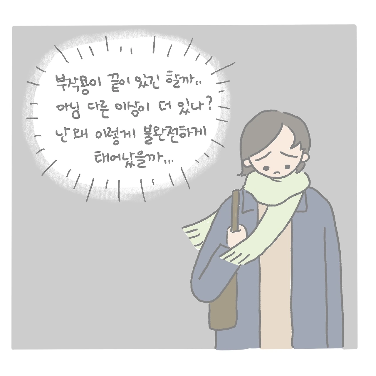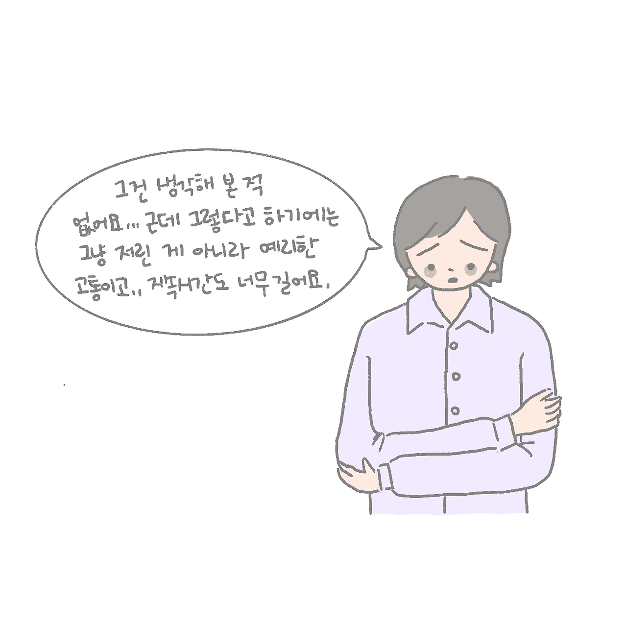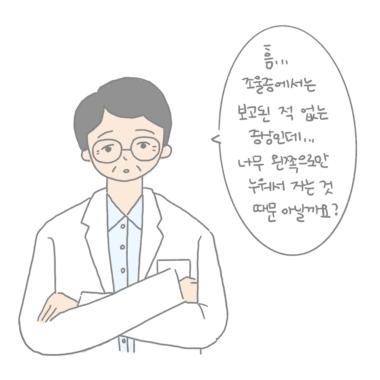 약의 용량을 조절하고, 왼쪽으로만 눌리는 자세로 자지 않도록 노력했지만 통증은 주기적으로 찾아왔습니다. 신경과도 찾아갔지만 이상이 발견되지 않았고, 그렇게 또 새로운 부작용은 없어지지 않고 몇 달 동안 지속되었습니다.
