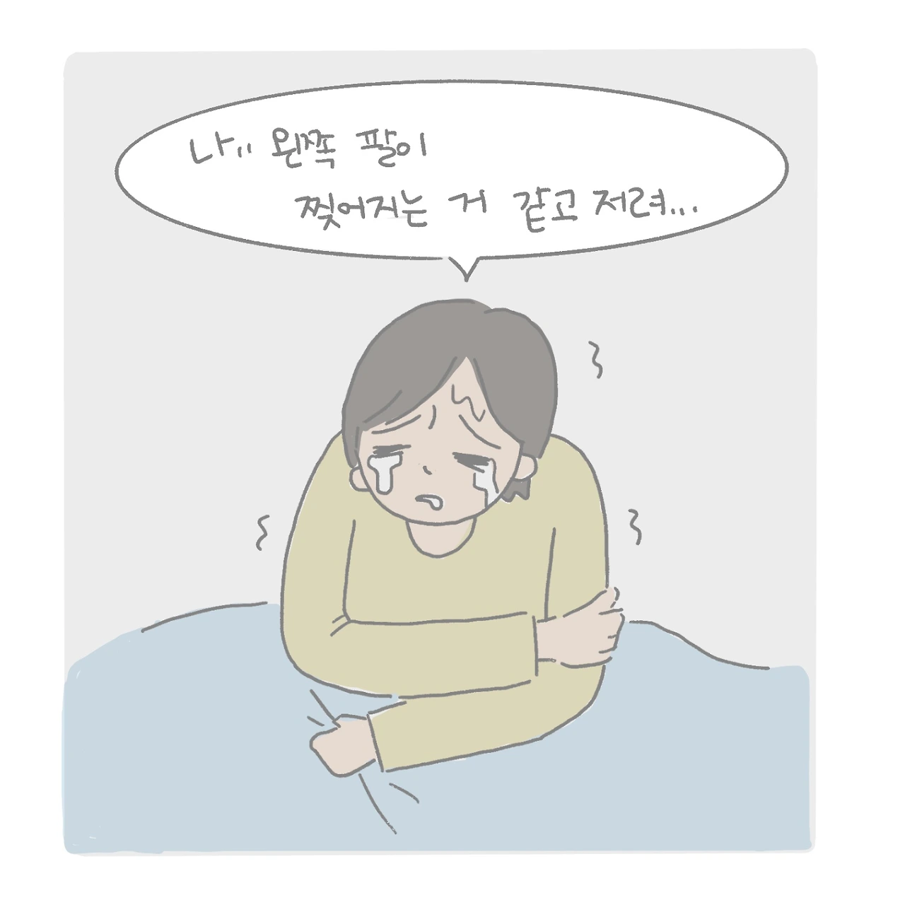 6개월 가까이 구토를 동반한 식이장애가 지속되다가 겨우 지나갔을 때쯤, 새로운 부작용이 찾아왔습니다. 일주일에 3-4번, 왼쪽 팔이 찢어지는 듯하게 아프고 저려서 자다가도 깨어나는 증상이었습니다. 꼭 왼쪽 팔만, 자다가 나타나는 증상이라서 저녁에 먹는 약의 부작용이라고 밖에는 생각할 수 없어서 병원에 찾아가 하소연을 했습니다.