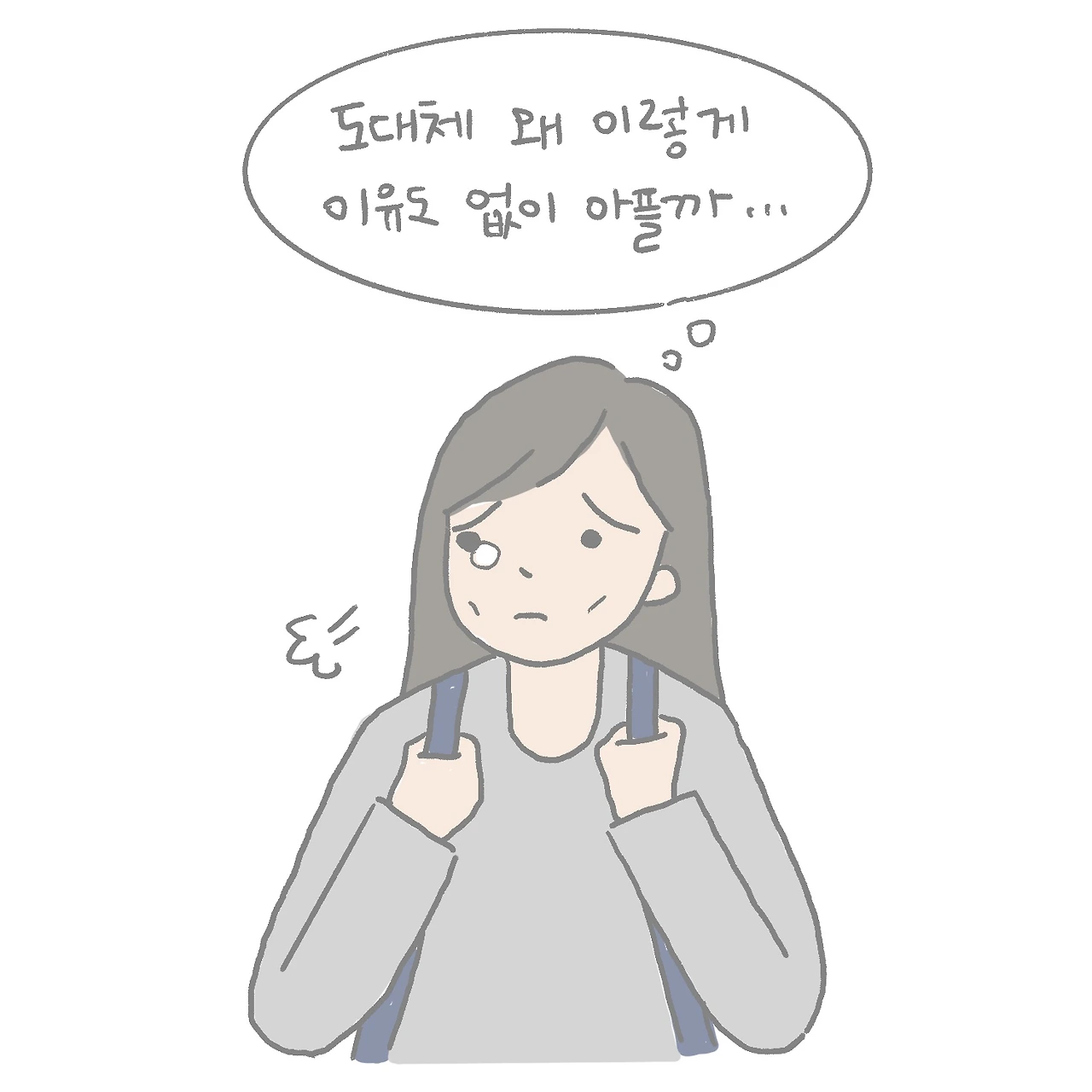 저는 주변에 정신건강의학과를 다닌 사람이 전혀 없었기 때문에, 이유를 알 수 없는 온갖 증상이 나타났을 때 정신건강의학과를 가야겠다는 생각을 해보지 못했습니다. 울 증상의 경우 처음에는 우울감, 무기력감이 나타나다가 오랫동안 방치되면 신체적인 증상이 나타나기도 하는데요. 조울증으로 인한 울증상은 보통 어떤 사건으로 인한 트라우마로 나타나는 우울증과 달리 호르몬의 문제이기 때문에 외부적인 요인이 전혀 없어도 나타날 수 있다는 걸 병을 진단받기 전에는 몰랐습니다. 게다가 저는 어릴 때부터 늘 허약해서 온갖 증상을 달고 살았기 때문에 신체적인 고통이 조울증과 관련이 있을 거라는 건 더 생각하기 어려웠습니다.