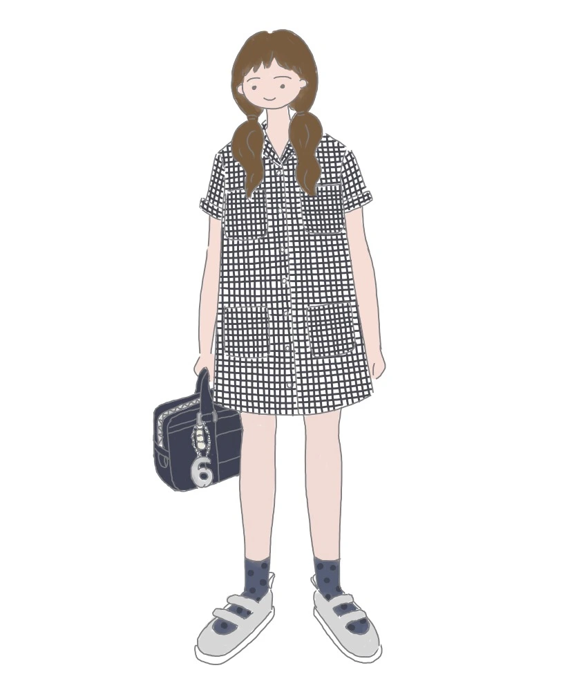 위아래로 통풍이 잘 되기 때문에 여름에 원피스만큼 시원한 아이템은 없을 거 같아요. 저는 캐쥬얼한 스타일을 좋아하기 때문에 빳빳한 면 소재의 살짝 A라인으로 떨어지는 원피스를 많이 갖고 있는데요, 이런 디자인의 원피스는 정장구두만 아니라면 어떤 신발에도 잘 매치되고, 양말을 신어주면 더 귀엽습니다. 그림을 자세히 보시면 체크무늬 원피스에 도트무늬(땡땡이) 양말을 매치했지요. 이렇게 같은 색상톤인데 패턴이 다른 것을 섞어주면 좀 더 위트 있는 스타일이 됩니다. 양말을 고르실 때 주로 많이 갖고 있는 옷의 색상인데 독특한 패턴인 것을 선택하시면 이처럼 예쁘게 매치하실 수 있으니 참고하셔요!
