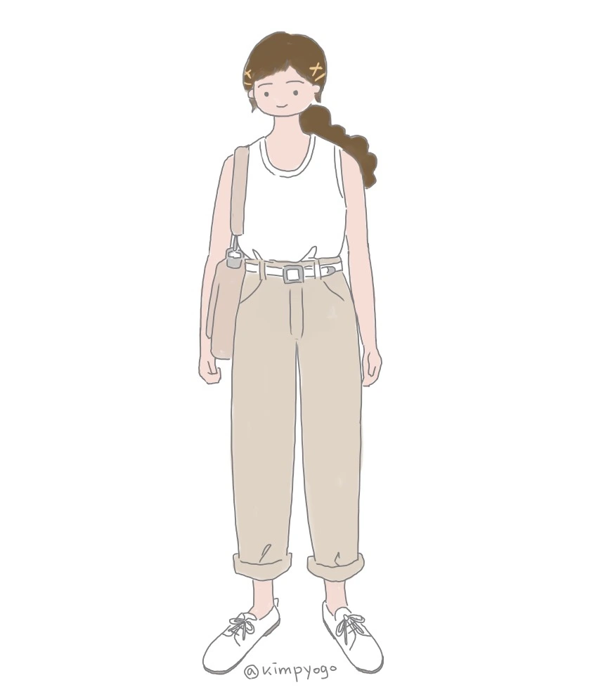 첫 번째 스타일은 슬리브리스(소매가 없는 디자인) 탑에 들러붙지 않는 보이프렌드 핏 면바지를 매치해 보았습니다. 이 스타일은 노출이 많지 않아도 소재를 잘 선택하면 충분히 시원하게 즐길 수 있는데, 사각거리는 느낌의 면바지는 여러 브랜드에서 여름에 많이 내놓고 있기 때문에 쉽게 구할 수 있습니다. 또한 시원해 보이는 시각적 효과를 주기 위해서 화이트를 많이 사용했는데요, 전부 화이트로 하는 것보다 베이지색을 바탕 컬러로 사용하고 화이트를 포인트로 하면 조금 더 세련된 느낌을 줄 수 있습니다. 이 룩에서 한 가지 추천 아이템을 고르자면 화이트 컬러의 가죽 벨트입니다. 보통 검은색이나 갈색 벨트는 많이 가지고 계시죠? 화이트 컬러 벨트는 필요할까 싶지만 의외로 하나쯤 갖고 있으면 세련된 포인트를 주기에 유용하니 맘에 드는 것을 찜해 두셨다가 세일할 때 하나 장만하시기를 추천드립니다.(화이트 벨트는 조금 튀는 아이템이니 보통 세일할 때 많이 남아있어요.^^)