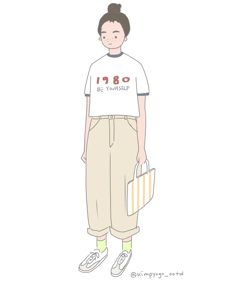 이번 착장은 평소에 제가 아주 자주 하는 스타일입니다. 하체 부종이 있는 경우 다리에 꽉 끼는 바지를 입었을 때 부종이 더 심해지기 때문에 약간 여유 있는 핏의 바지를 선택하게 되는데요. 그래서 저는 스키니 바지는 거의 없고, 배기핏의 바지가 대부분입니다. 배기핏의 바지를 고르실 때는 유의할 점은, 엉덩이 부분이 충분히 여유 있는 느낌이되 허리와 골반은 잘 맞고 발목 부분이 꽉 끼지 않고 여유가 있는 것을 고르는 것입니다. 이런 바지는 편하기도 할뿐더러 멋진 핏이 나온답니다. 저는 거기에 약간 하이 웨이스트인 바지를 좋아하는데, 크롭탑보다는 조금 긴 허리선까지 내려오는 티셔츠(H&M에서 많이 나옵니다.)를 같이 입으면 다리가 길어 보이면서도 귀여운 느낌이 되기 때문입니다. 거기에 요즘 유행하는 네온컬러를 양말과 에코백 등에 들어가게 하면 더욱 멋진 룩이 완성된답니다.