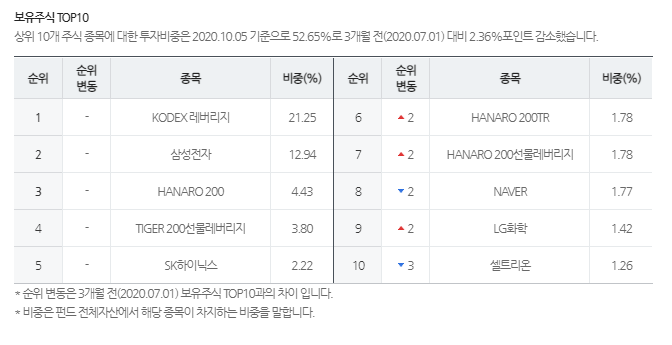 NH-Amundi 코리아 2배 레버리지펀드 보유 상위 10 종목인데요.