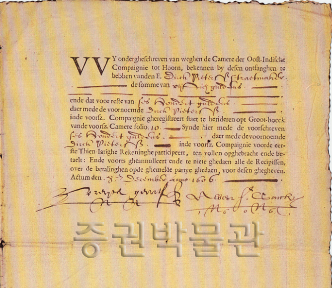 네덜란드 동인도회사 주권 (출처:증권박물관)