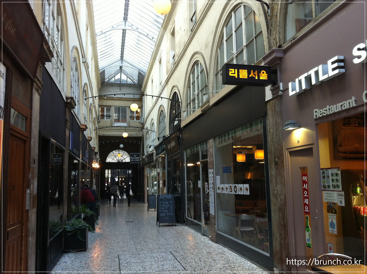 화려함과 돈의 냄새가 웅장한 오페라거리를 걸어 올라가다보면 중간에 아시아 (대부분 일본) 음식점들이 많은 골목으로 살짝 들어가보자. 그러면 파리의 빠사쥬 중 가장 긴 것 중의 하나인 빠사쥬 슈와절 (Choiseul)을 만날 수 있을 것이다.