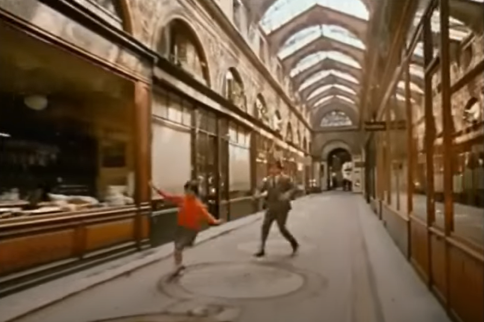 한 소녀가 어른들을 놀리며 긴 아케이드를 뛰어가고 있다. 어른들은 속수무책 이 아이한데 당하는 듯이 쫓아가고 있다...그 아케이드는 그랑쎄르프 빠사쥬...