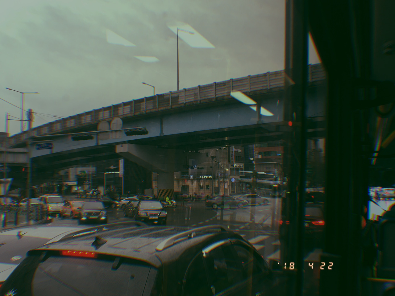 버스에 몸을 얹는다. 창 밖을 가볍게 두드리는 빗방울 소리가 정겹다. 우산을 쓰고 바삐 걸어가는 사람들의 모습을 지켜보는 것만으로도 즐겁다. 하늘은 흐린 먹색이지만, 아스팔트 땅은 푹 젖어 짙은 흑색이다.