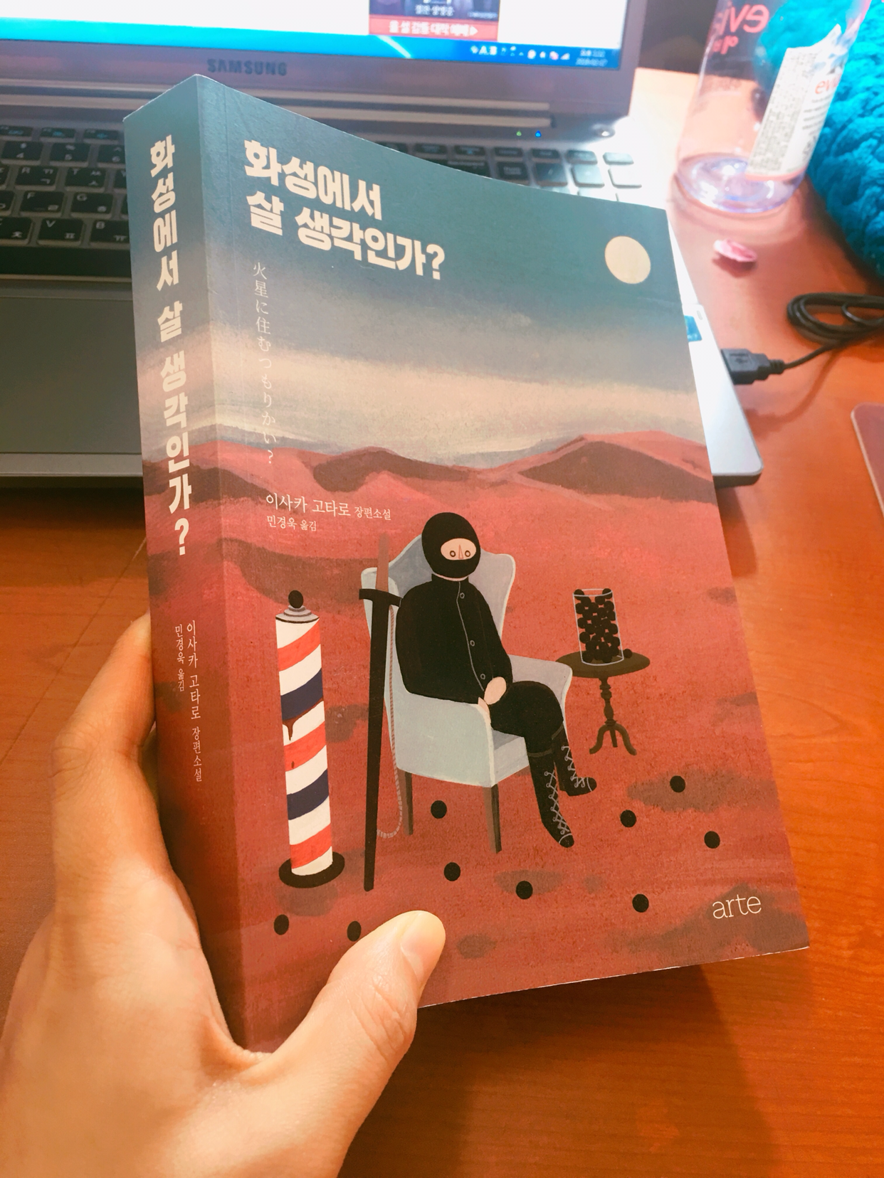 <화성에서 살 생각인가?>의 표지를 보았을 때, 목검을 가진 도둑이랑 검은 구슬이랑 이발소 간판에다가 배경이 화성인가? 이 이야기는 화성에서 벌어지는 일인가? 하고 호기심을 가득 안았다. 기묘하게 피를 흘리는 것 같은 이발소 간판을 보며, 화성에 있는 이발소에서 살인사건이라도 일어나는 모양인가, 지레 짐작을 했다. 매번 새로운 이야기들을 짜임새 있게 보여주는 그의 작품에, 매번 기대하고 매번 기대 이상의 재미를 얻는 것이 즐겁지 않을 수 없었다.