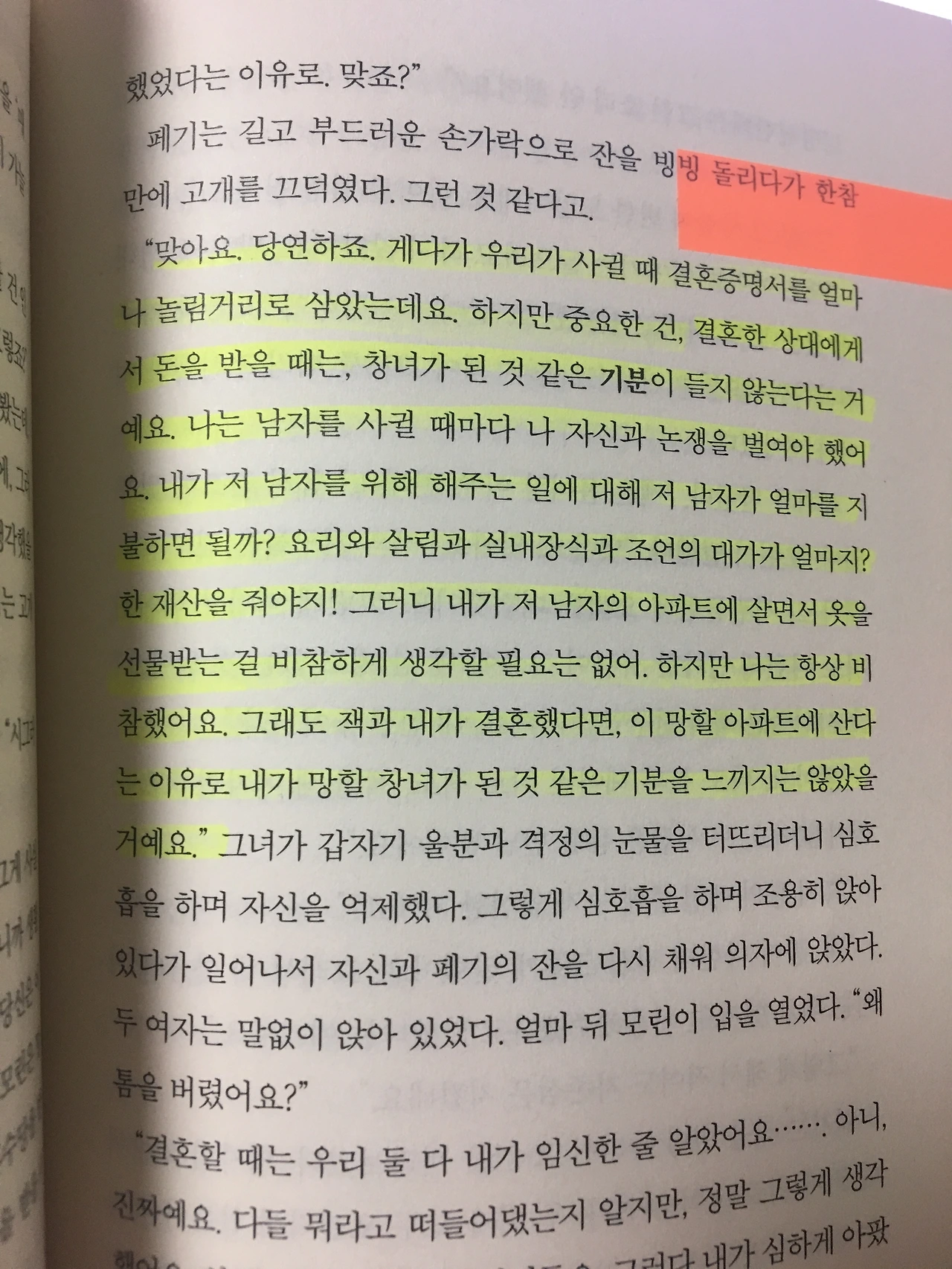 P. 53 '내 쪽에서는 전혀 욕망을 느끼지 않는데도 굳이 날 취하고 싶다면 마음대로 해요. 그러고도 창피하다는 생각이 들지 않는다면.'