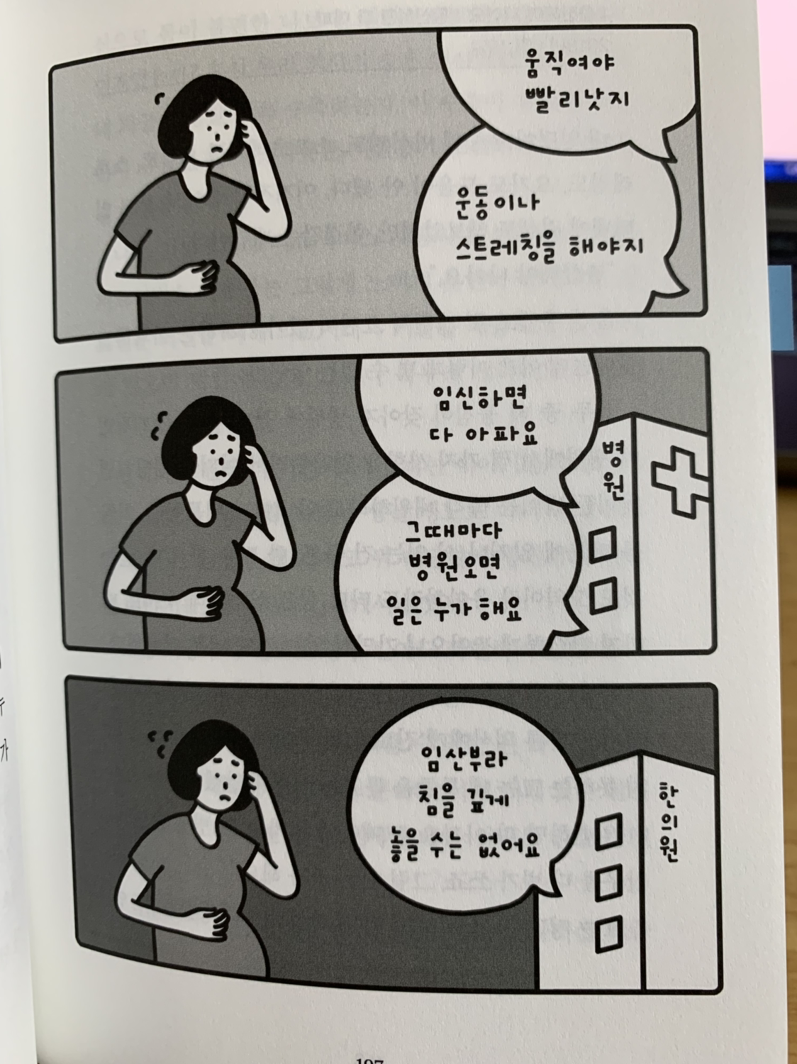 가장 인상 깊었던 부분은 아마 비슷한 시기에 임신과 출산을 경험한 미국에 사는 사람의 이야기일 것이다. 사회 제도적으로도 그렇고 개개인이 가지고 있는 임산부에 대한 인식도 그 격차가 너무 커서 기함을 토했다.