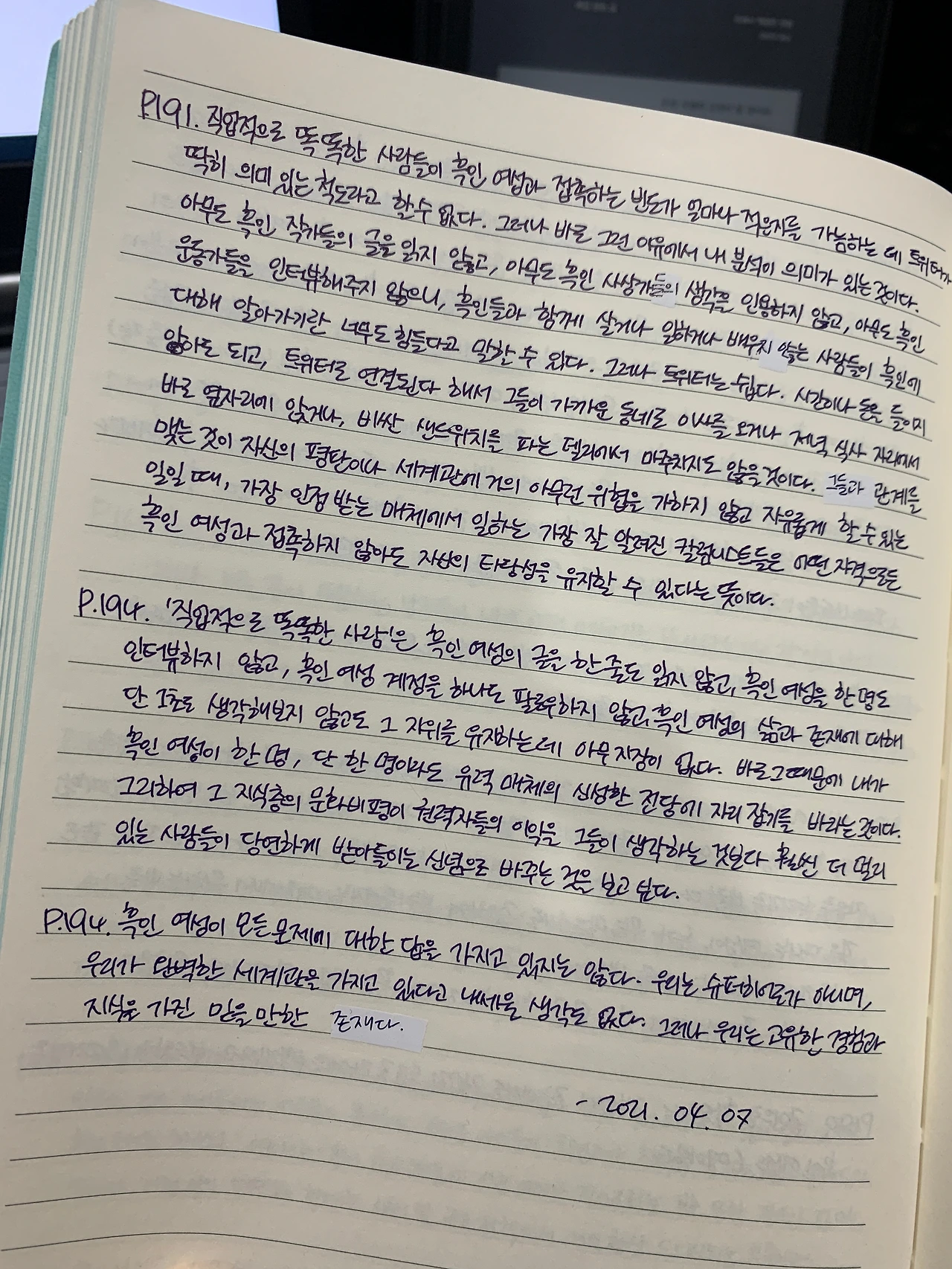 이런 사실을 알게 되었을 때, 내가 무엇을 더 할 수 있을까를 고민해본다. 책을 읽고 생각을 정리해 쓰면서 앞으로 나아갈 방향을 고심한다. 다음 책에서는 어쩌면 답을 찾아볼 수도 있지 않을까.