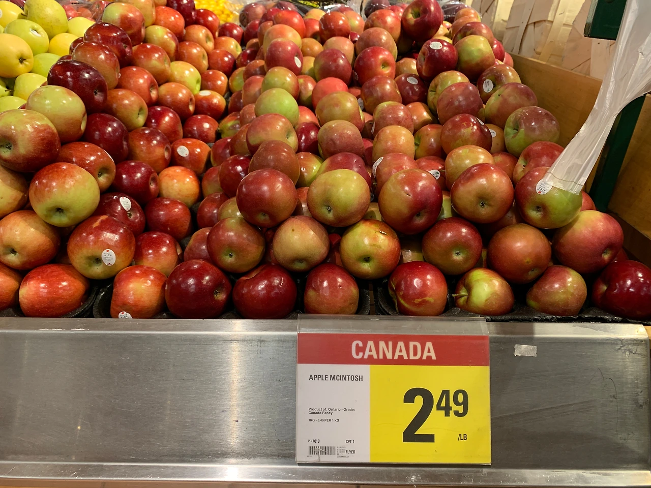 매킨토시(McIntosh) 사과가 식료품 시장에서 보인 게 반가워서 로얄 갈라 사과와 함께 몇 개 집어 들어왔다. 매킨토시 사과는 재작년 사과 따기하러 갔을 때 나무에서 따자마자 먹었던 바로 그 사과였다.