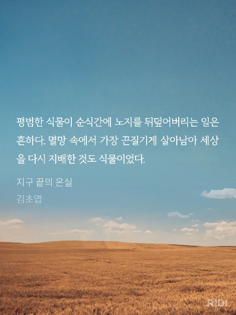 이렇게 꿈도 희망도 없는 멸망의 한 자락에서도, 식물같은 사람들이 있었다. 인류가 틔운 종말의 싹을 너무도 손쉽게 말려버리는 식물들. 식물같은 사람들.
