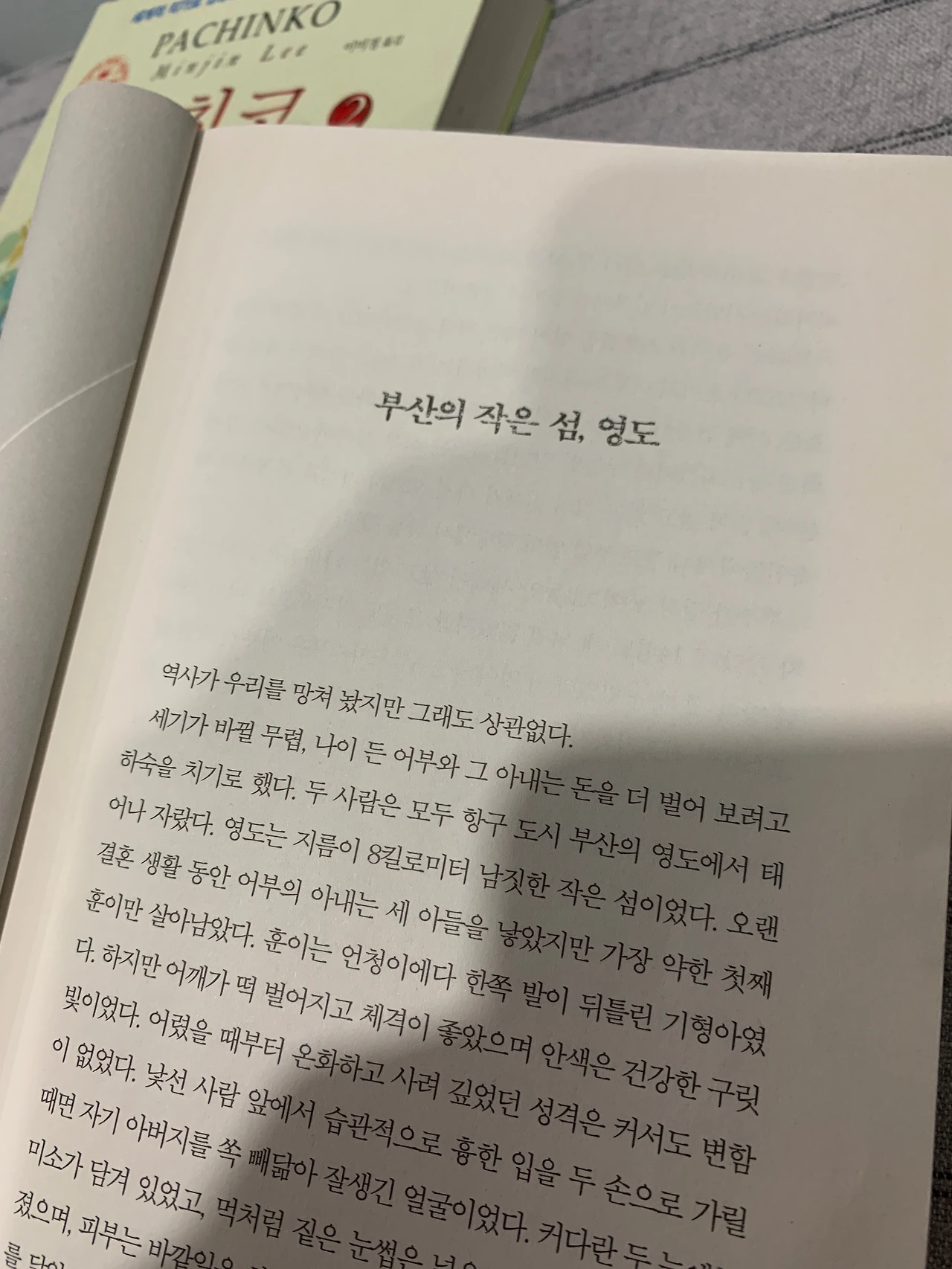 <파친코>는 상, 하 두 권으로 나뉘어져 있는 책이다. 영문 원서로는 두꺼운 한 권짜리 책으로 나왔는데, 한국어로 번역해 출간하면서는 아마도 책의 단가 같은 걸 생각해서 두 권으로 나눠 만든 게 아닐까 싶었다.