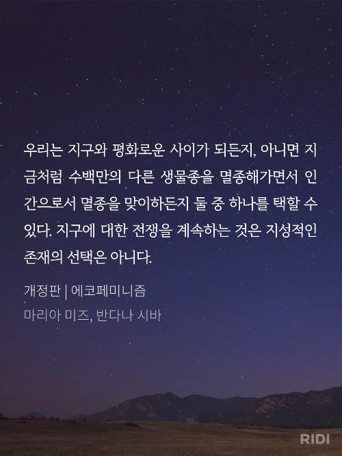 개인의 실천은 너무 미미해보이고 힘이 없어 보인다. 그러나 그런 실천이 무의미하진 않다고 믿는다. <에코페미니즘> 초판이 발행된 것이 30년 전인데, 그때와 비교했을 때 지금은 확실히 대중의 인식이 꽤 변했다. 당시엔 대부분이 모르던, 혹은 심각성을 인지하지 못했던 사안들이 요즘엔 매일 미디어에 오르내리며 사람들에게 경종을 울리고 있다. 그러면 이제 개인의 실천을 넘어 국가나 초국적 기업들의 실천이 뒤따를 때가 되지 않았을까?