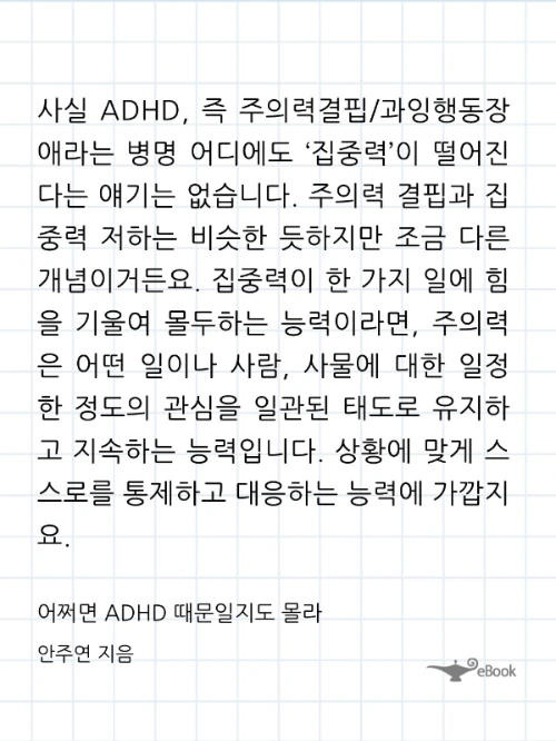 P. 118. 많은 ADHD인들이 시간이라는 것을 '다른 사람에게는 중요하지만 본인은 체감하거나 통제하지 못하는 추상적인 개념'으로 경험한다는 것입니다.