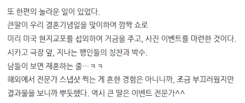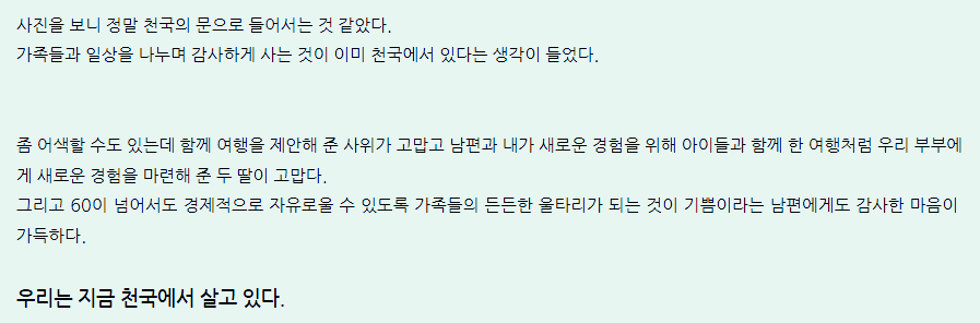 글을 읽으면서 엄마가 아빠, 언니와 함께 정말 뜻깊은 시간을 보냈구나 싶어 나도 모르게 흐뭇해졌다.