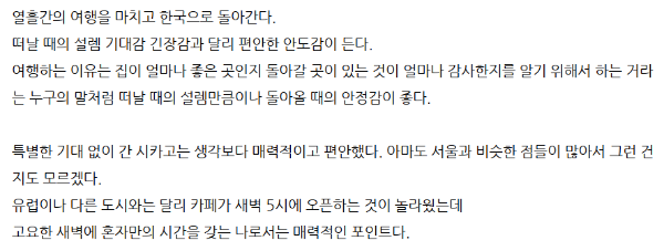 <시카고 여행> 글의 완성본에서 좋았던 부분을 발췌해 본다.