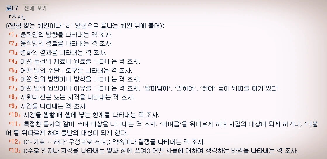 그래, 조사 ‘로’는 뜻이 13가지 있구나.