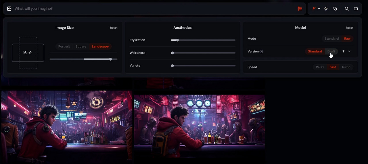 저는 여러 실험 끝에 ‘극사실적인 SF 톤’을 이 작품의 메인 무드로 정했습니다. 이후 작업은 모두 이 스타일에 맞춰 톤을 유지했어요. 그런데 이 단계에서 이야기는 또 달라지기도 합니다. 이미지를 만들다 보면 ‘이 장면은 되겠는데?’ 싶은 것도 있고, ‘이건 아무리 해도 안 되겠다’ 싶은 것도 생기거든요. 그래서 저는 초기에는 Draft 모드로 작업합니다. 퀄리티 차이는 거의 없지만 훨씬 빠르고, 작업 시간을 아낄 수 있기 때문이죠.
