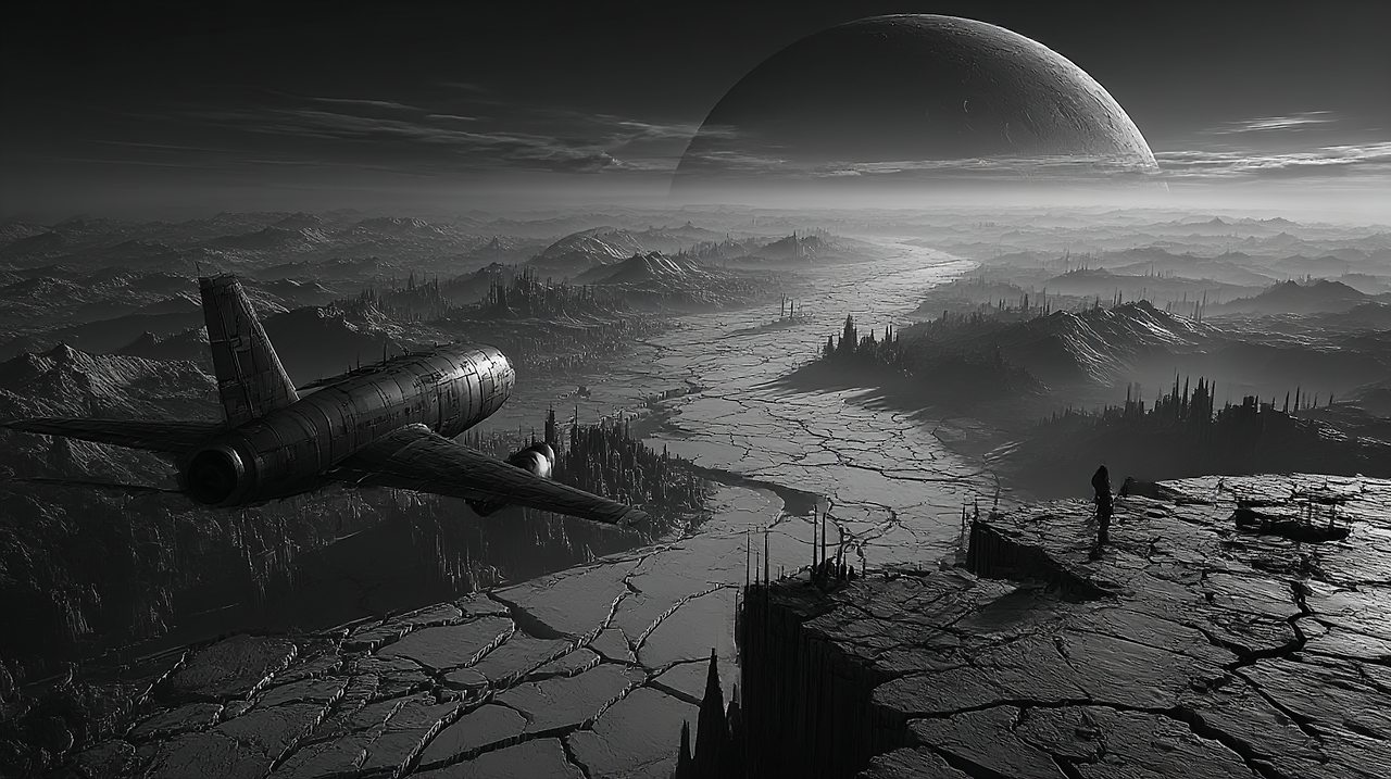 우주 택배 기사라는 직업 특성상, 여러 행성, 다양한 외계 종족 등 제가 상상하던 SF 장면들을 자연스럽게 담을 수 있었죠. 사이버펑크 스타일을 꼭 넣고 싶어서 ‘렉시움’이라는 행성을 설정했고, 씬시티의 비주얼, 듄2의 아라키스, 토르3의 흑백 전투씬처럼 강한 흑백 비주얼 장면도 꼭 실험해보고 싶었습니다. 그래서 ‘태양을 잃은 행성 루시온에 유물을 배달하는 이야기’를 메인 줄거리로 삼게 되었죠.