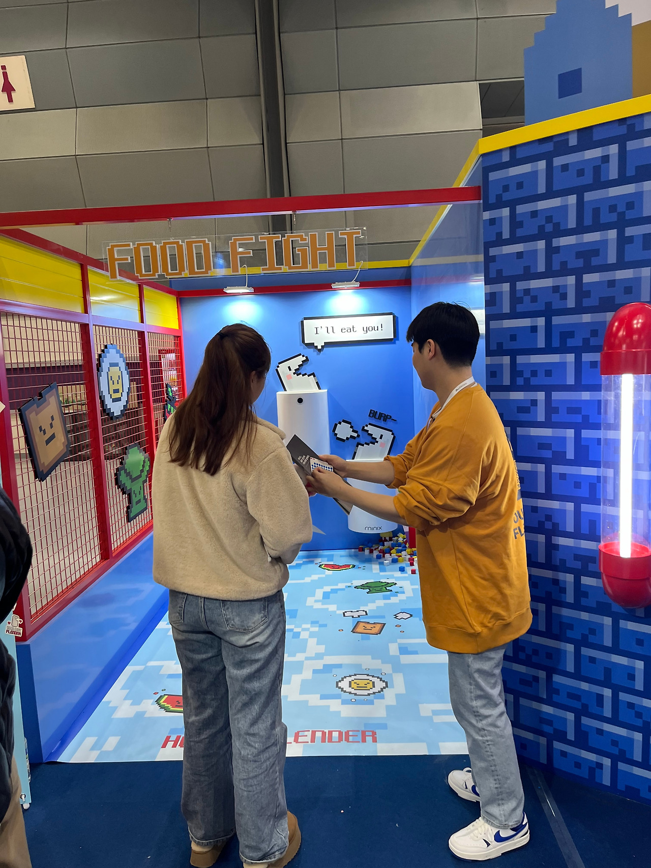 앳홈은 1인 가구용 소형 음식물 처리기 '더 플렌더'를 아케이드 게임 콘셉트의 공간으로 만들어 음식물을 몬스터처럼 부수는 체험을 진행했다. 가전과 레트로한 감성의 아케이드 게임 월드로 꾸며놓은 곳은 전시장 전체에서 유일해 독특했으나 재미있는 콘셉트를 잡은 만큼 조금 더 제품을 게임의 주인공처럼, 음식물을 악당처럼 표현해 콘셉트와 브랜드의 제품을 딥하게 연결할 수 있는 다양한 콘텐츠를 준비했으면 어떨까라는 아쉬움이 남는다.