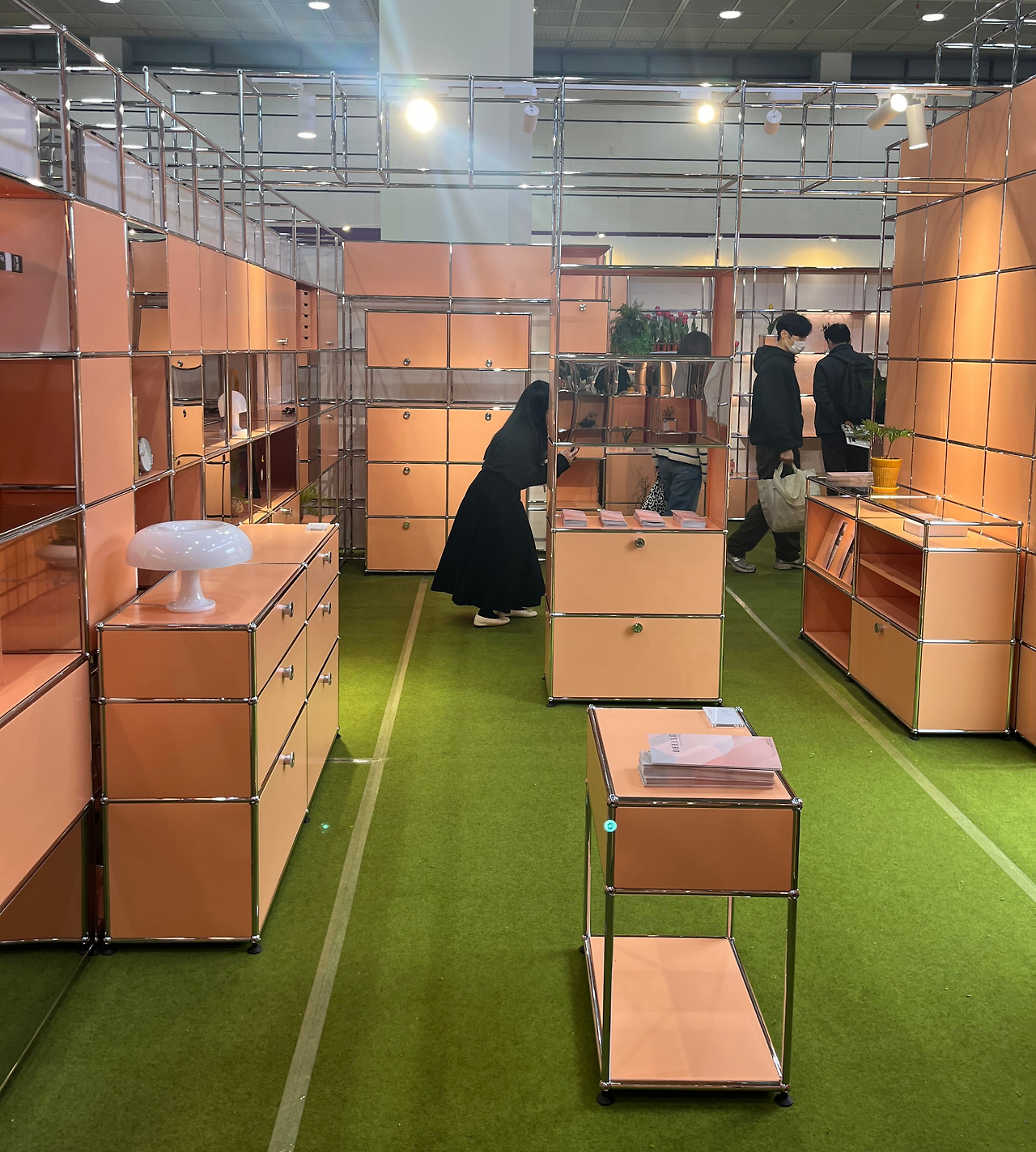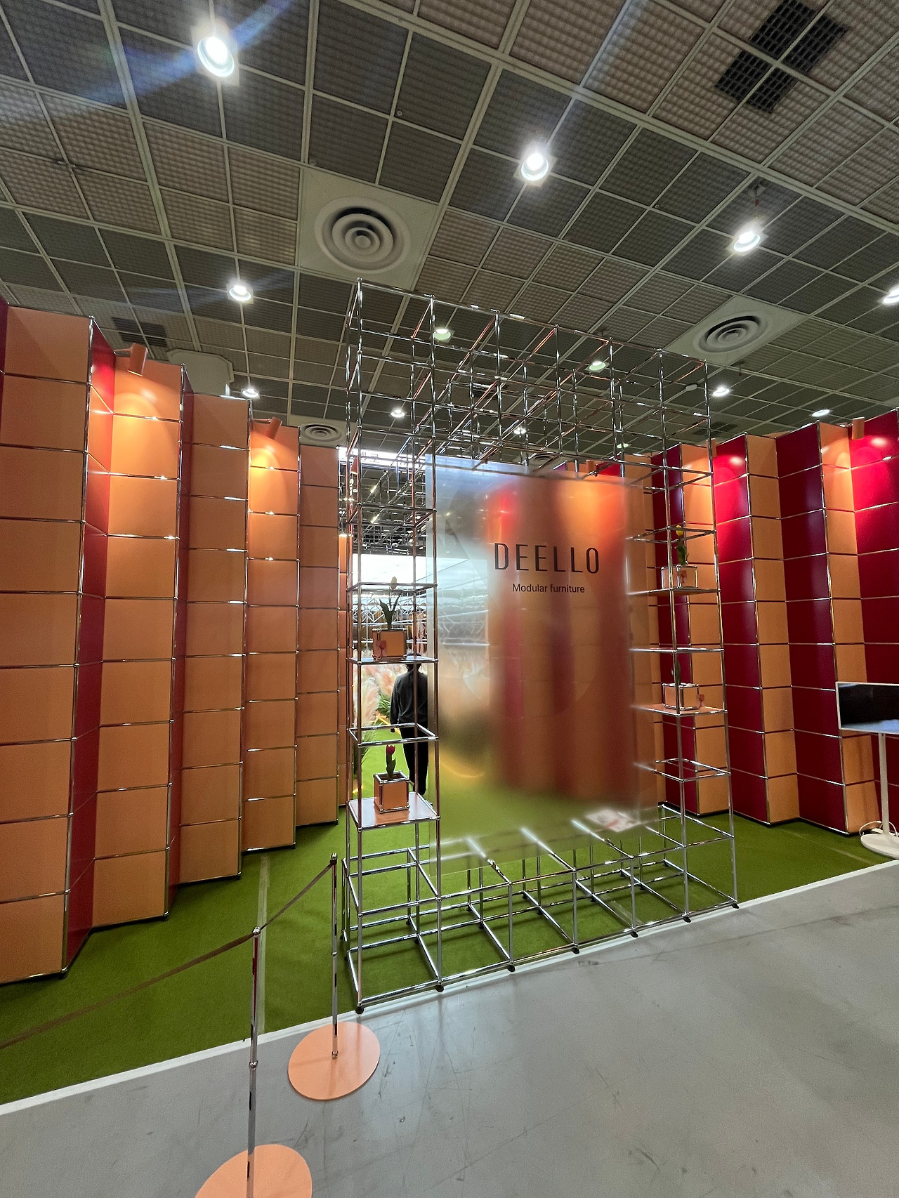 모듈형 철제 가구를 만드는 브랜드 DEELLO는 브랜드의 제품만으로 전시 공간을 구성했는데 구조물 자체의 임팩트나 공간 구성이 인상 깊었다. 입구에는 궁금증을 자아내는 파사드와 통로를 만들어 그 자체로 포토월이 되면서 입장 자체가 하나의 몰입감 있는 경험이 되는 구조로 되어있었다.
