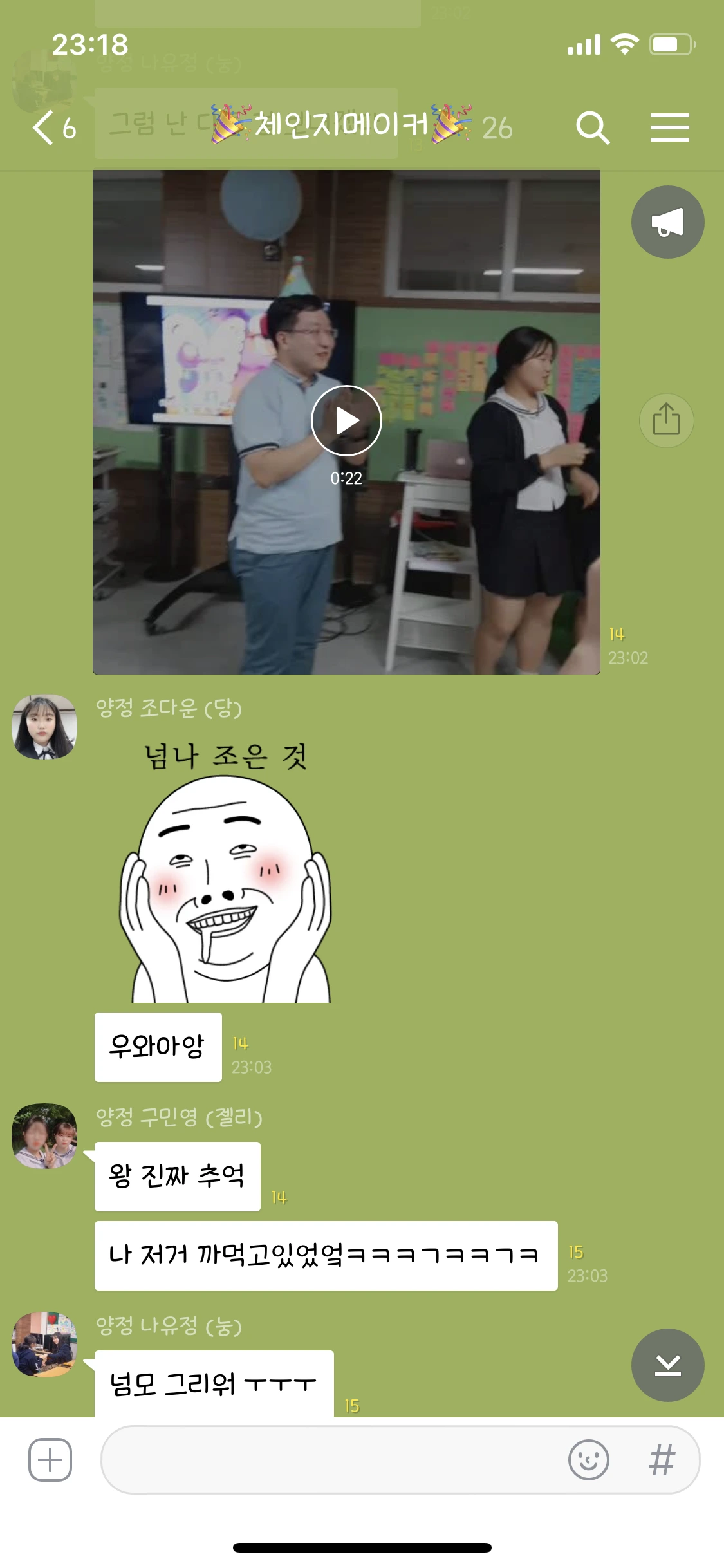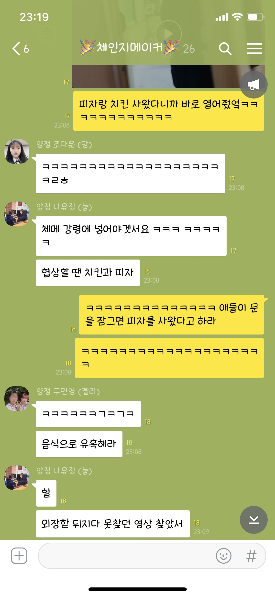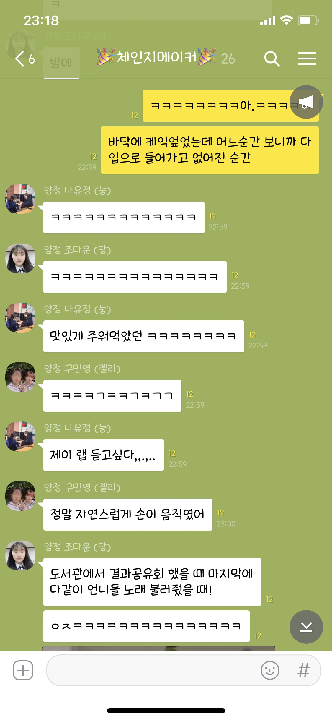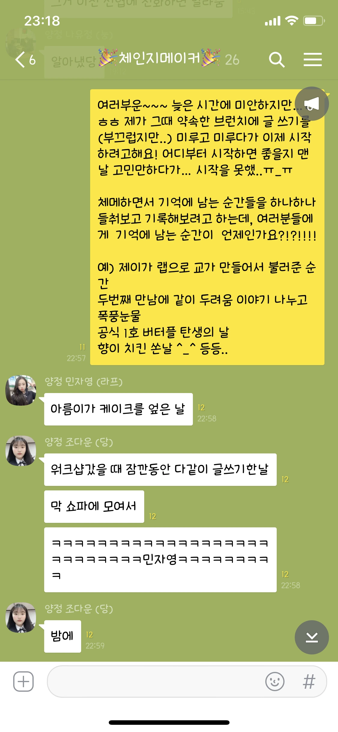 케이크 엎고 바닥에 있는거 주워먹고, 글쓰기 한다고 모여서 엄청 놀고..