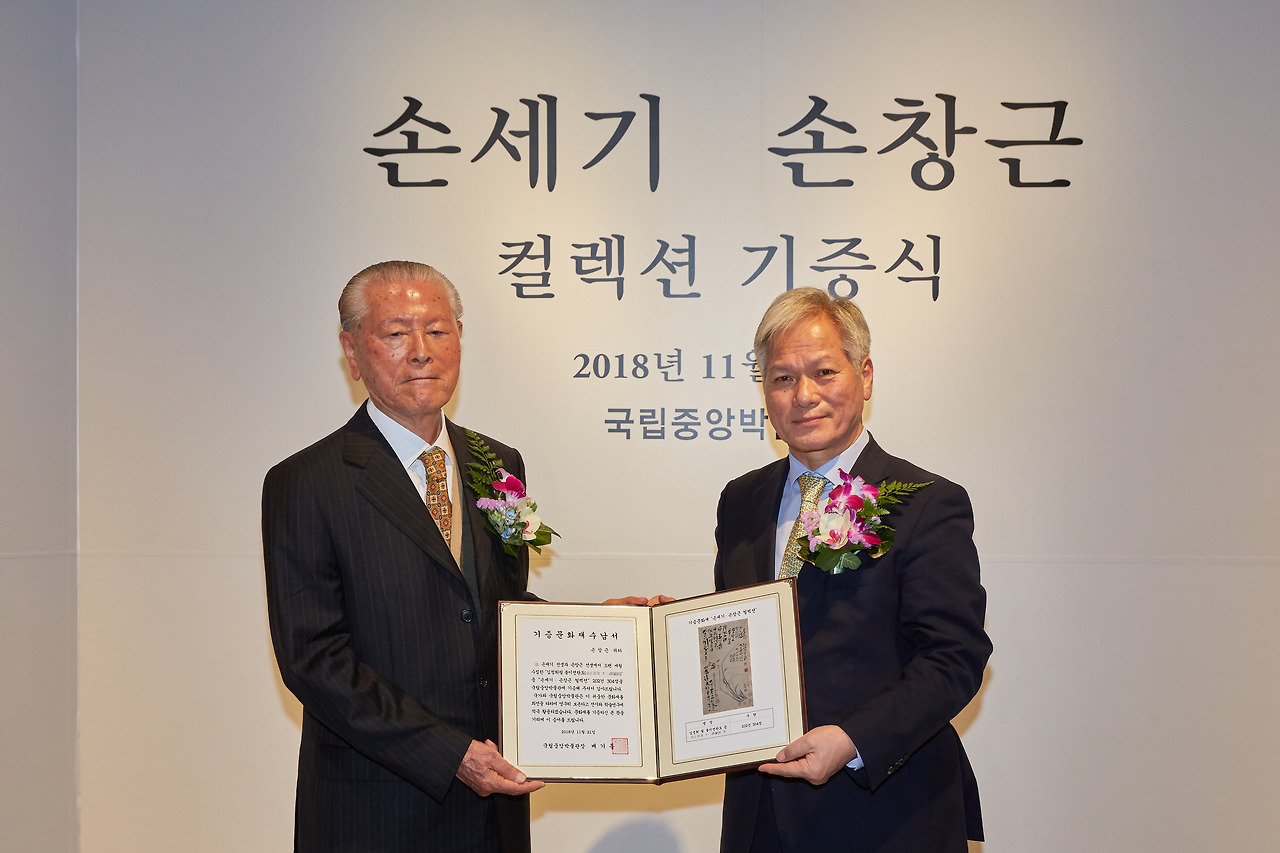 아들 손창근 선생은 2005년과 2010년 두 차례에 걸쳐 국립중앙박물관에 소중한 문화재를 기탁해 전시와 연구에 활용할 수 있도록 한 바 있습니다. 그리고 지난해 11월에는 아흔 살을 맞아 조건 없이 국립중앙박물관에 전부 기증했죠. <불이선란>을 포함해 기증된 유물은 모두 202건 304점에 이릅니다. 선대에 이어 모아온 귀중한 미술품을 박물관에 선뜻 내놓는 것은 말처럼 쉬운 일이 결코 아닙니다. 손창근 선생은 기증식 당시 이런 말을 했습니다.