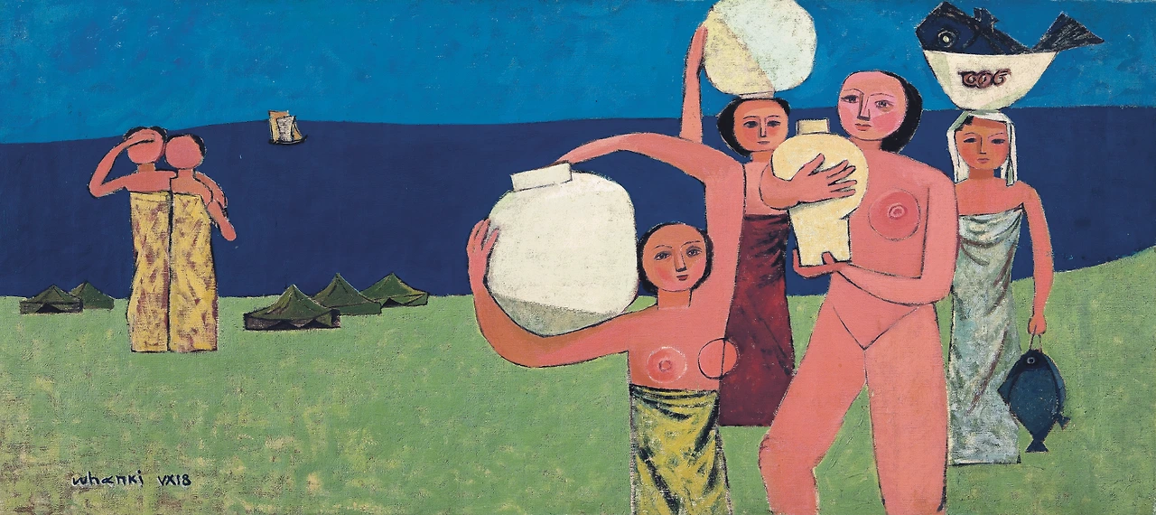 김환기 <항아리와 여인들>, 1951, 캔버스에 유채, 54×120cm, 개인 소장 [이미지제공: 갤러리현대]