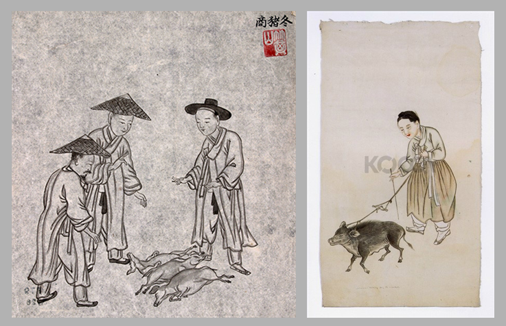 (좌) <동저상>(네덜란드 라이덴민족학박물관 소장) (우)<시장에 돼지를 끌고 가는 모습>(캐나다 왕립온타리오박물관 소장) <사진 출처: 맛칼럼니스트 황교익 블로그>