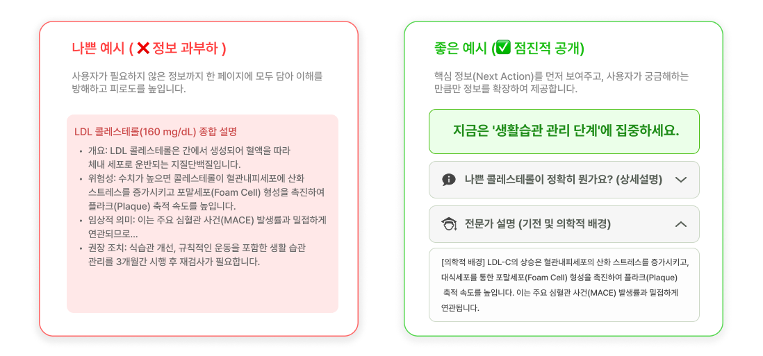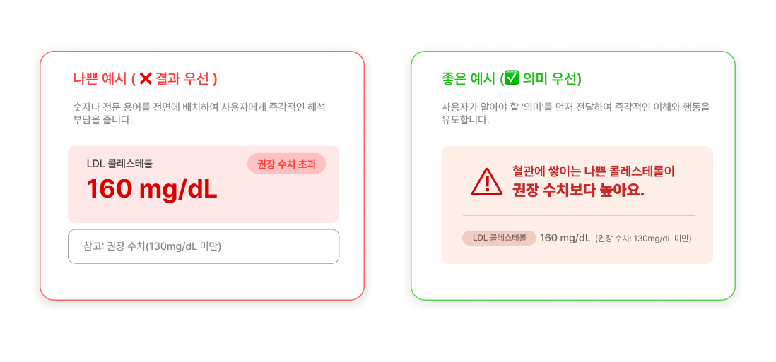 의학 지식은 전문가의 영역이지만, 이해의 책임은 UX의 영역이다.