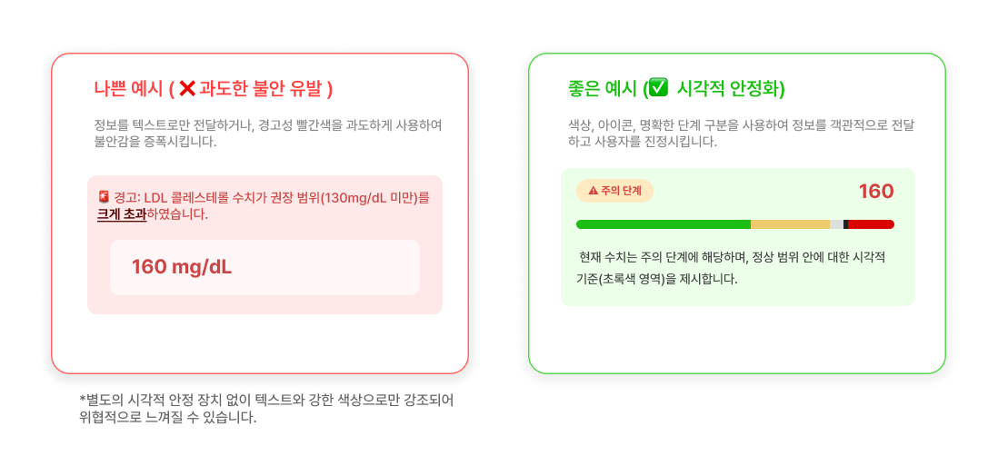 게이지 바:정상 영역을 시각적으로 강조하여 사용자를 진정시킴.