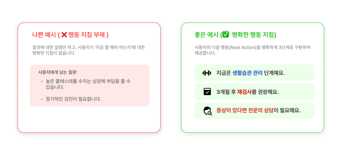 권장 행동: "3개월 후 재검사" (다음 목표 제시)