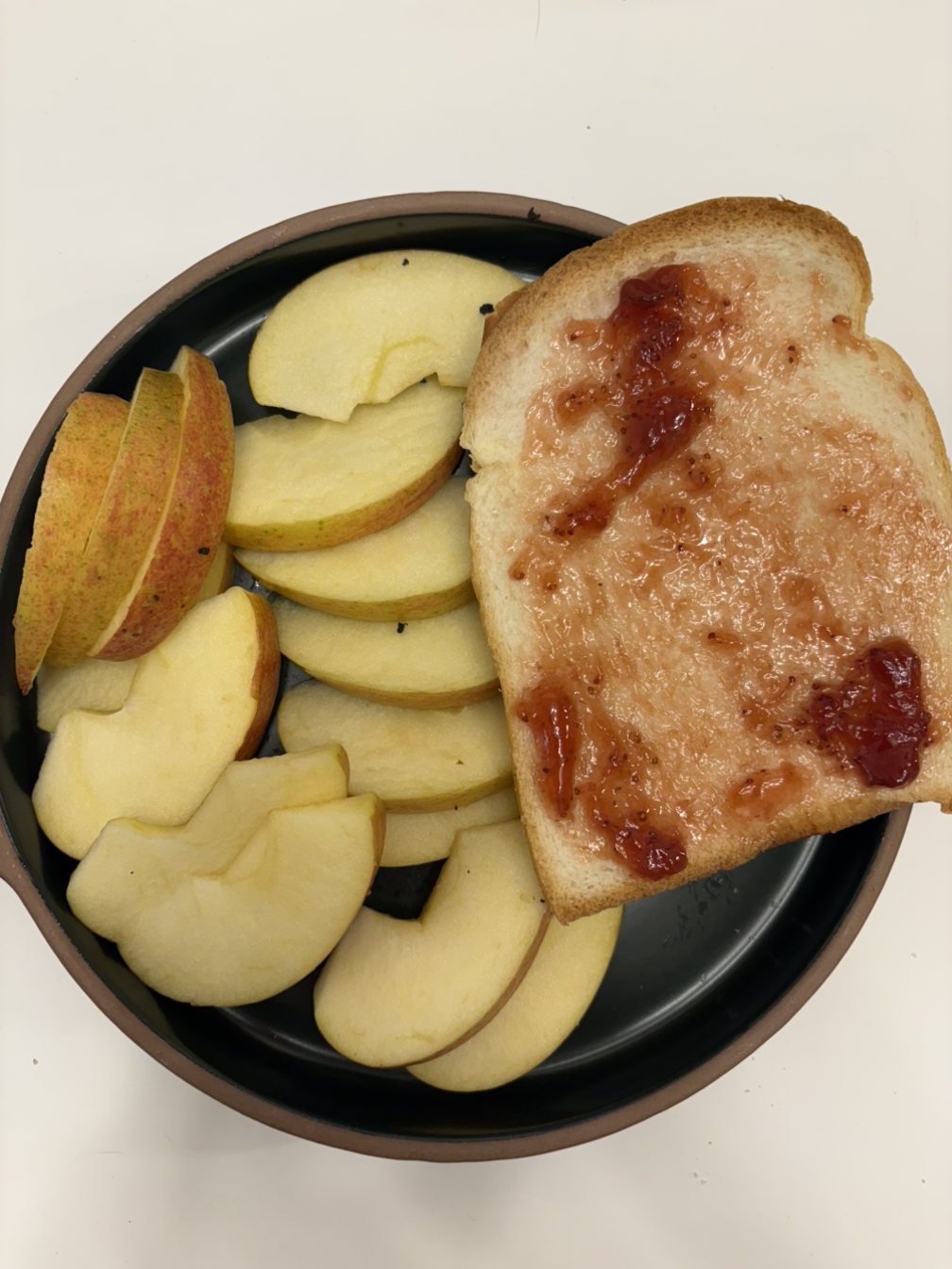 아침 식단 : 사과1알, 식빵 1장. 가볍고 좋다.