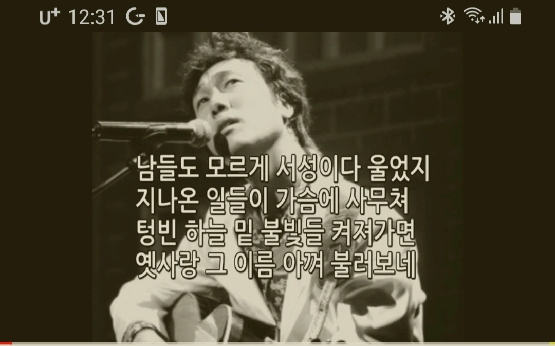 유튜브 영상이라 이문세 님의 노래 부르는 모습과 그 밑에는 노래 가사가 나온다.