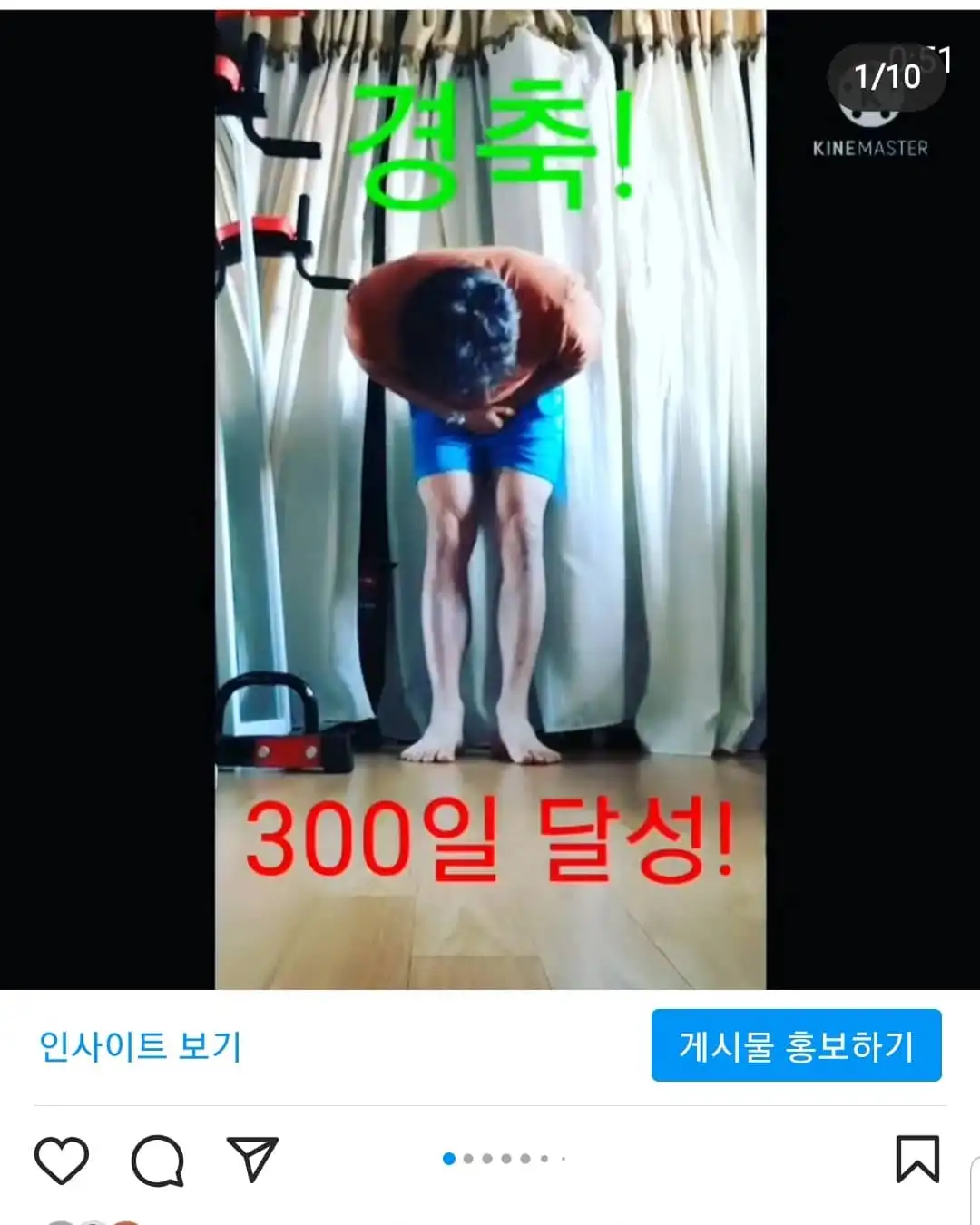 4. 다른 사람들께 운동으로 선한 영향력 전파하고자 300일 동안 매일 300개의 푸셥 챌린지를 했으며