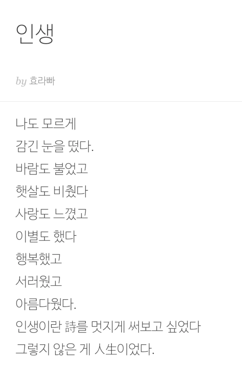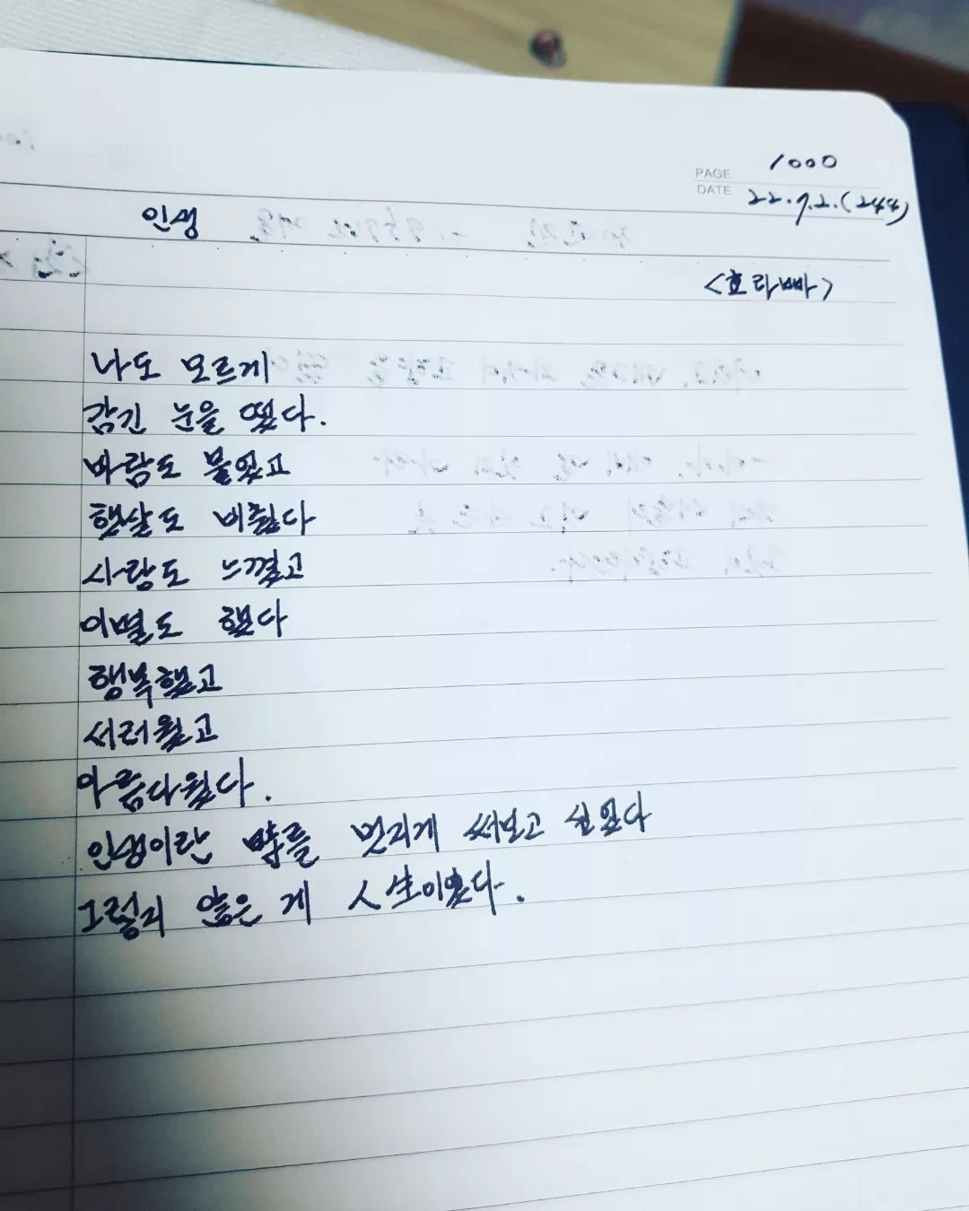 (밑에는 시 1,000편 필사를 기념해 직접 쓴 '인생'이라는 시를 올려본다. 여전히 조금 부끄럽다. 하하하)