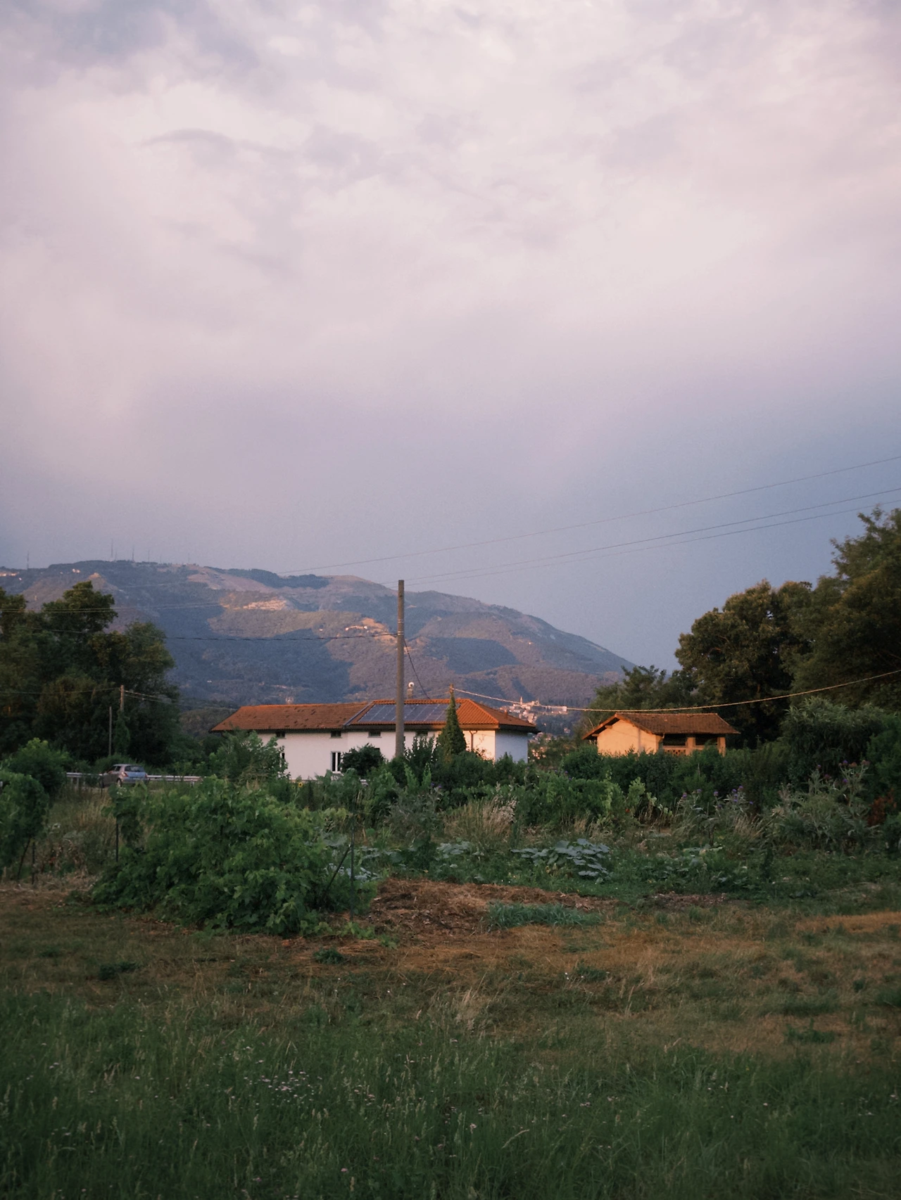 비건 식단, 늦은 저녁, 강한 햇빛, 흙길.