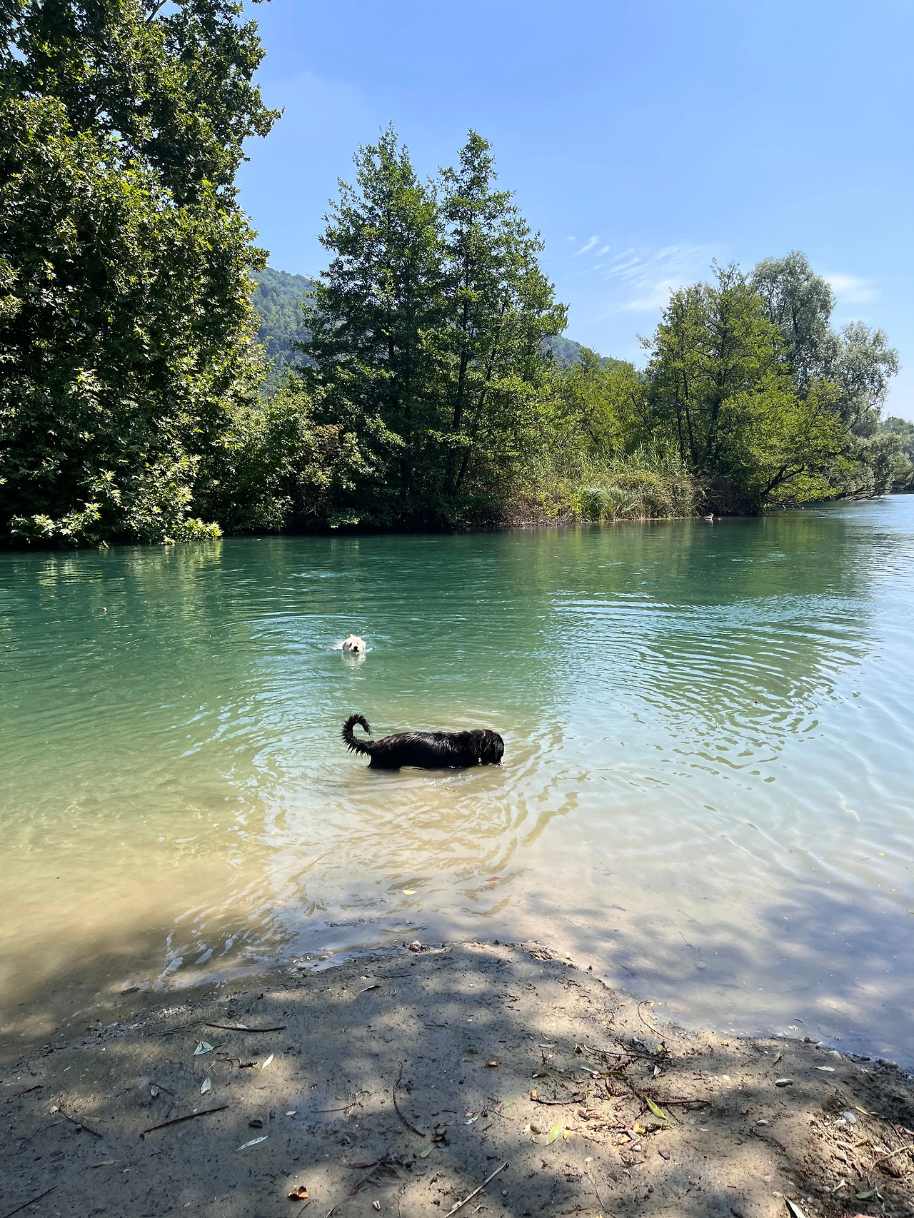 강가에 가서 수영하고