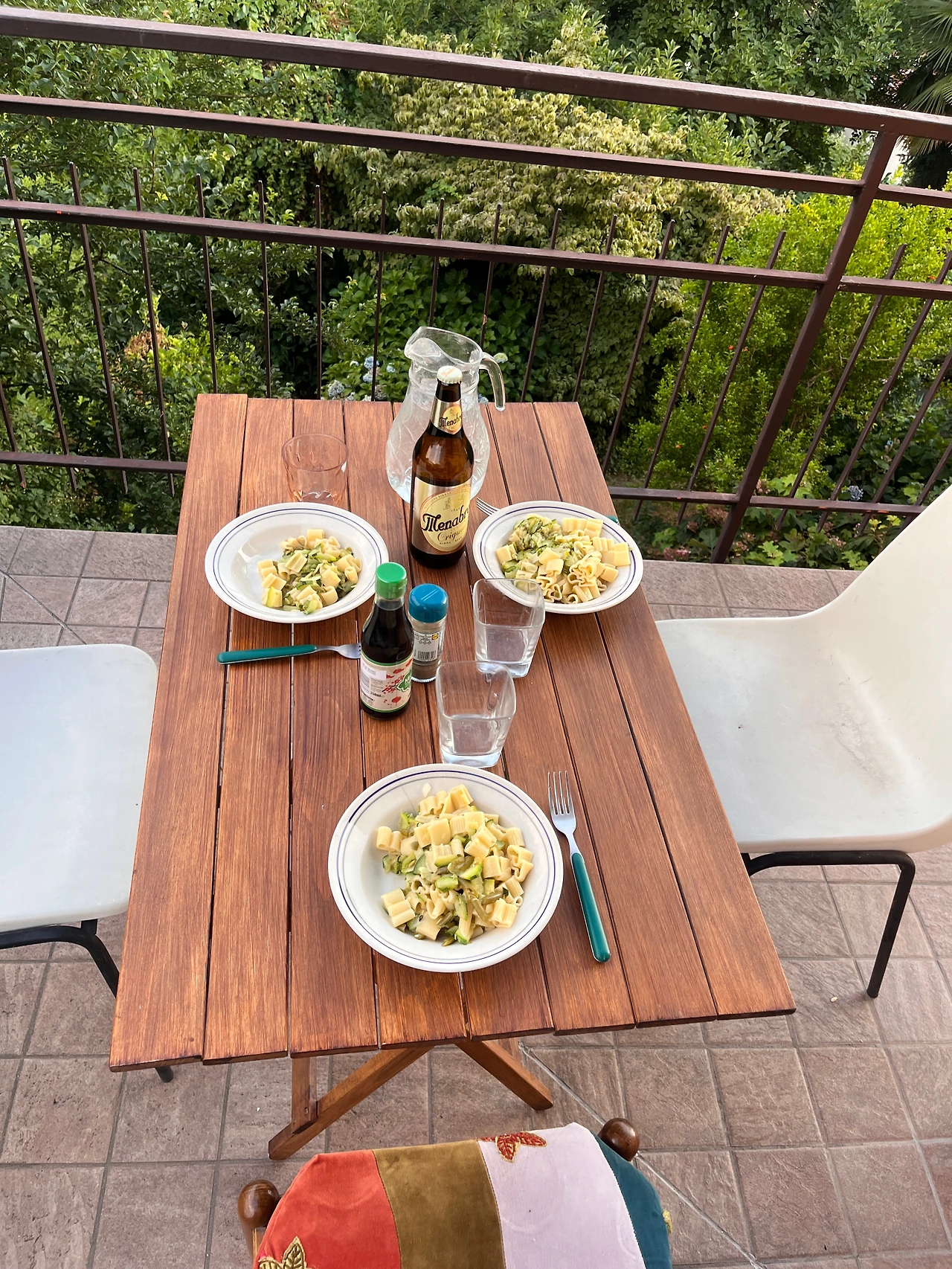 우리는 발코니에 상을 차려 첫 저녁을 먹었다.