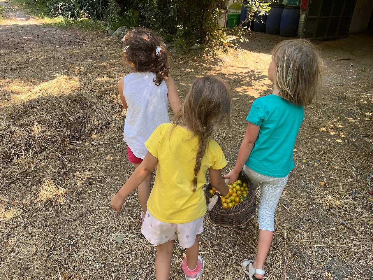 아이들은 작은 손에 열매를 잔뜩 쥐고 와서