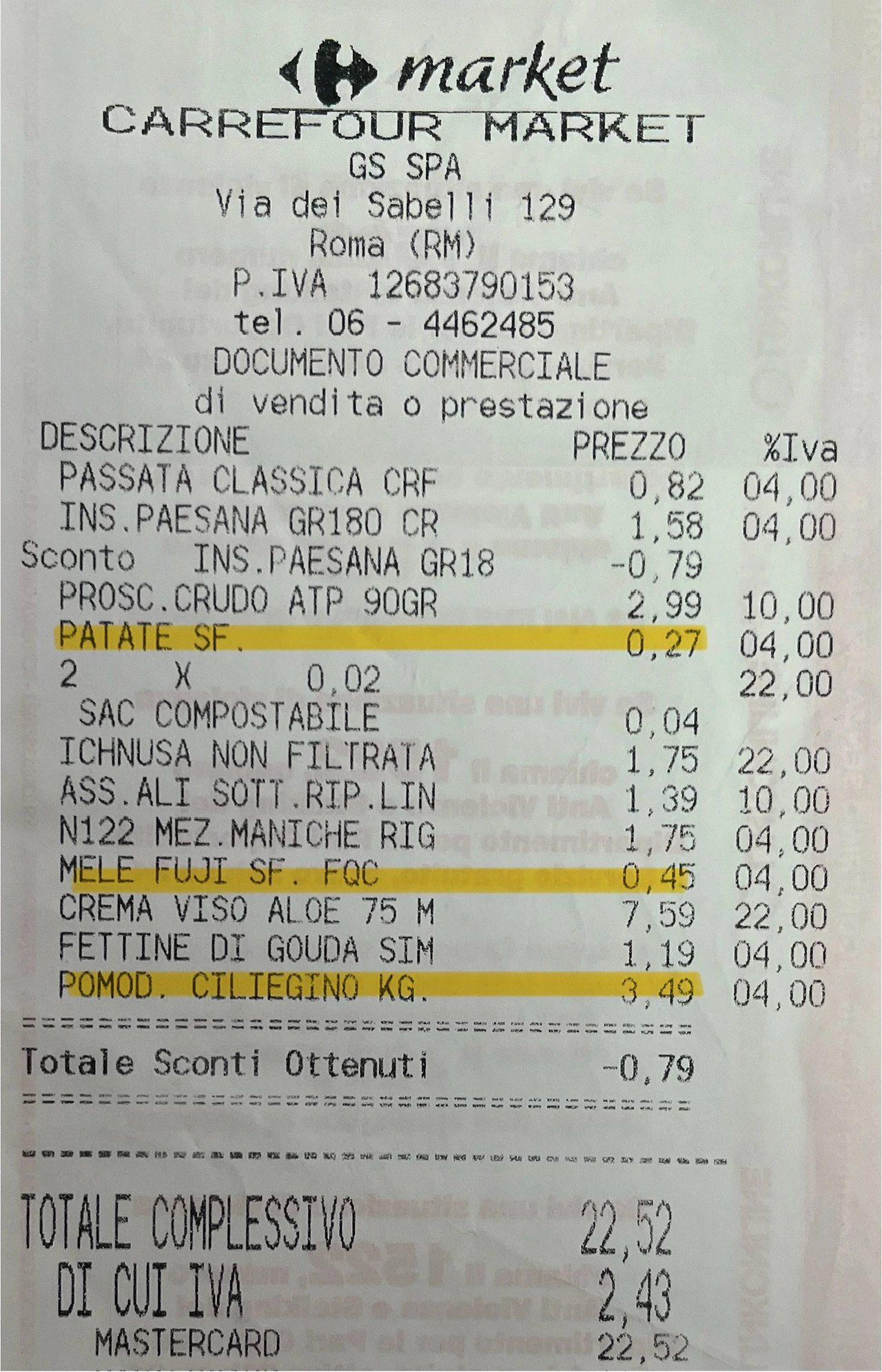 이탈리아에는 Coop, Conad, Carrefour, Pam 등 다양한 마트가 있다.
