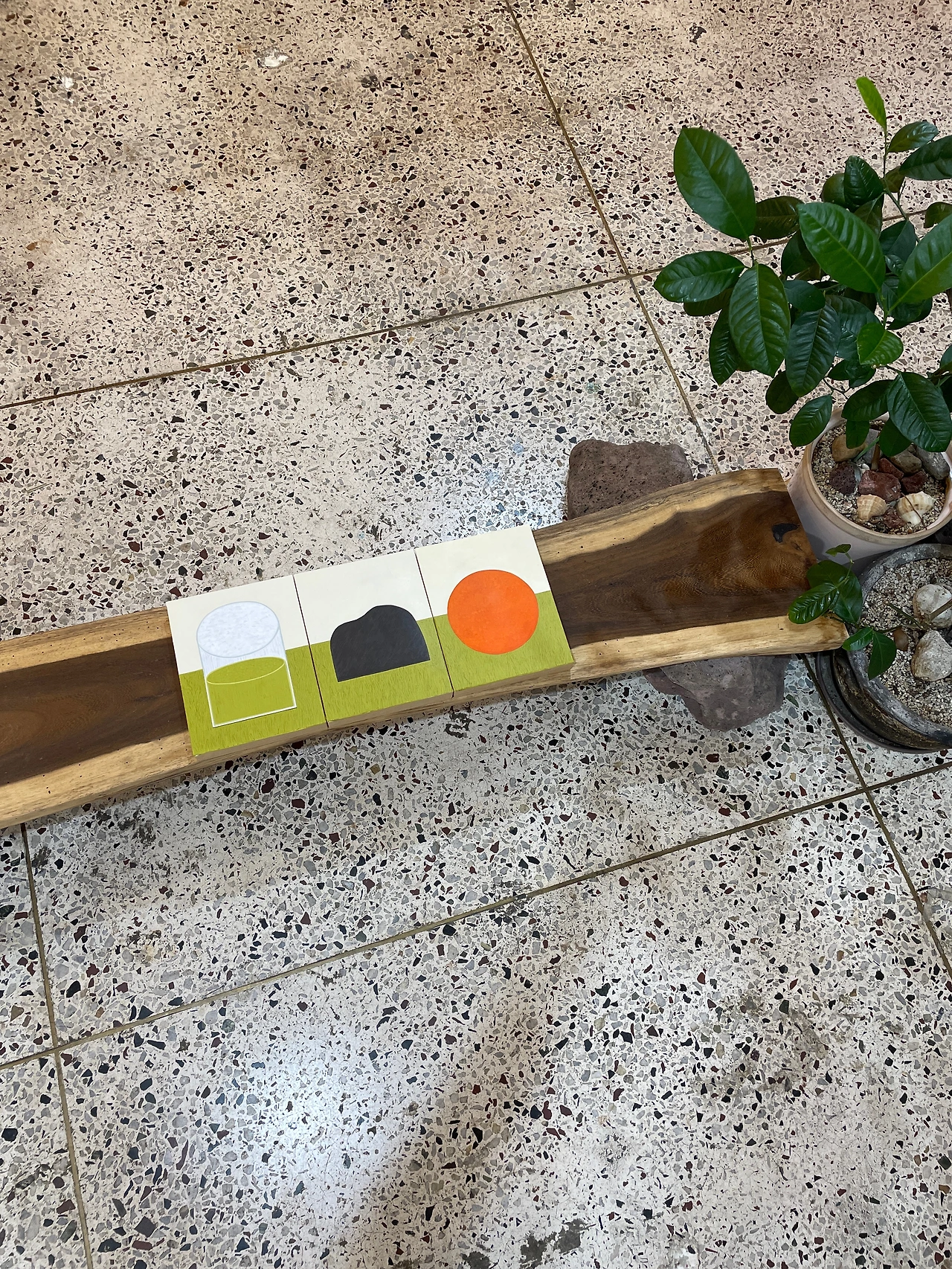 이희조 작가님의 작품은 2022년 친구가 기획한 전시에서 처음 만났다. 보통의 사람이라면 그냥 지나칠 수도 있는 사물을 아기자기하게 표현해 내는 방식이 특히 마음에 들었다. 자신만의 직선과 곡선을 이용해 과하지 않은 색들이 조화를 이루는 모습도 인상 깊게 다가왔기 때문에 고민 없이 아래 작품을 세트로 데려왔다.
