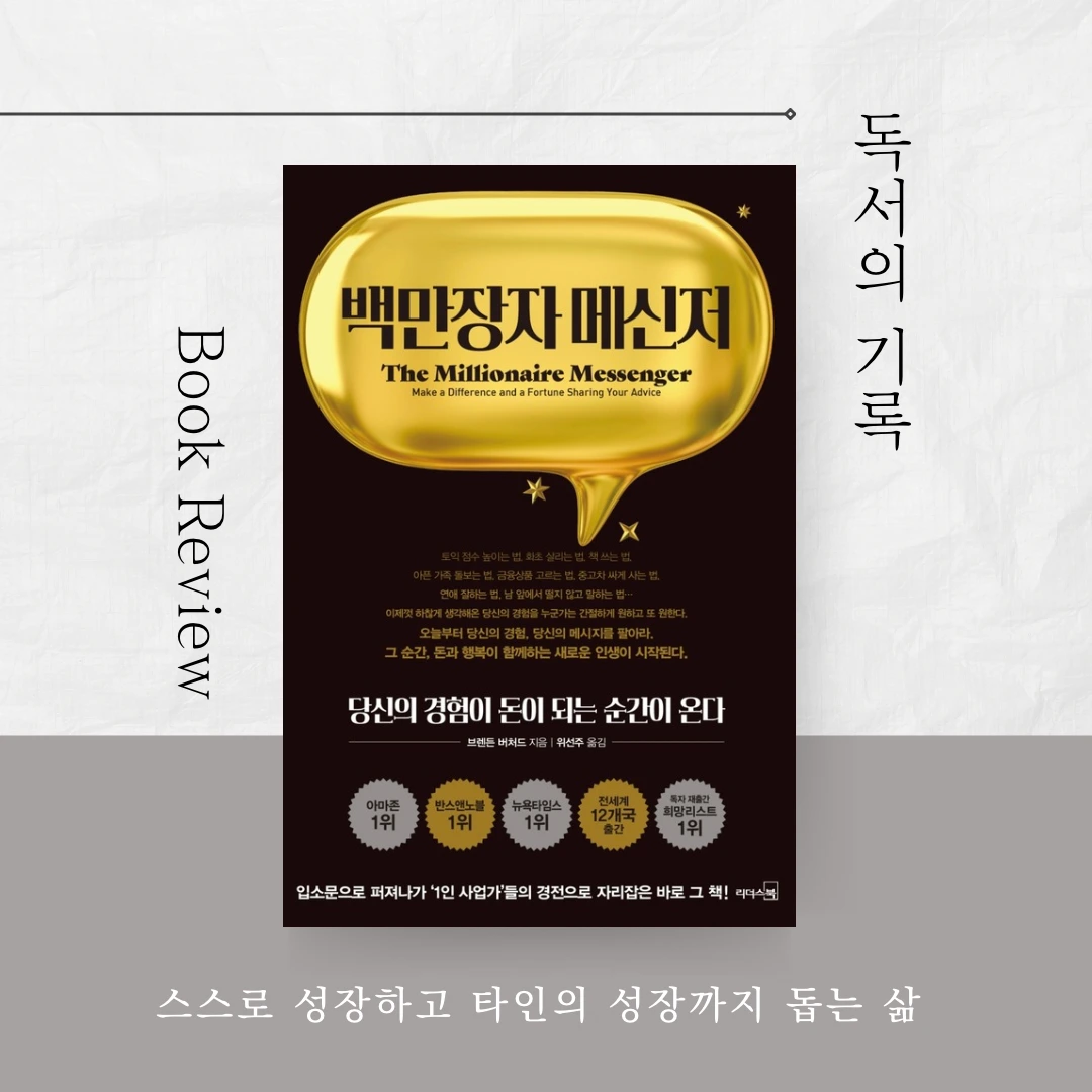 나 자신을 위한 성장, 타인을 위한 기여, 나의 성장과 기여로 자연스럽게 벌 수 있는 돈, 나는 진정으로 이런 삶을 살고 싶다. 이 책에서 말하고 있는 “진정한 메신저의 삶” 말이다.