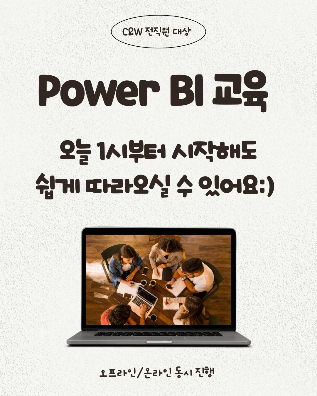 작년 9월, 리서치팀으로 옮기며 Power BI를 처음 접하게 되었다. 혼자 유튜브와 책을 통해 배우며 기본기를 익혔는데 분명 한계가 있었다. 내가 IT 프로그램에 능숙하지 않아 더 그랬던 것 같다. 3개월 넘게 팀원들과 고군분투하다 결국 팀을 위해 교육 및 컨설팅을 제안했는데 어쩌다 보니 전 직원 교육이 되어버렸다.