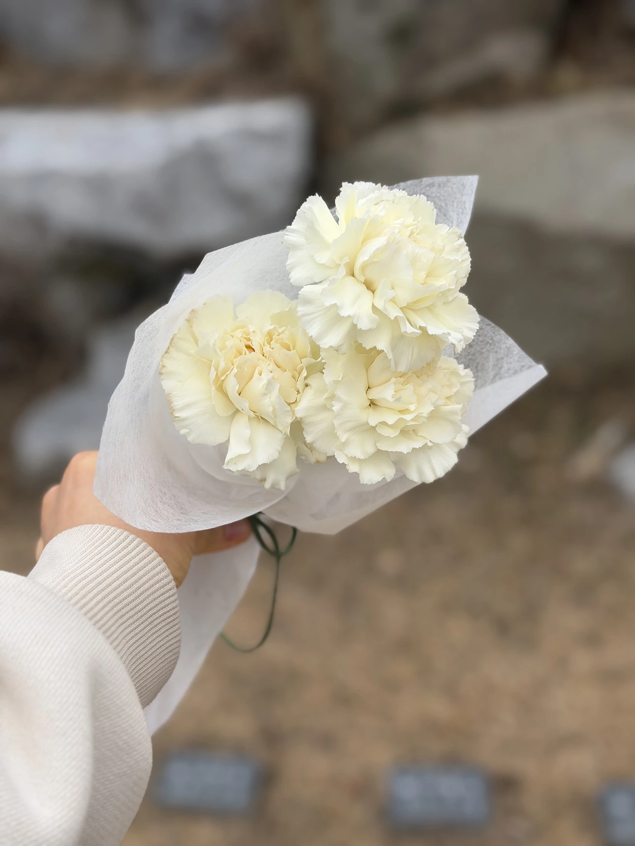 오늘따라 흰색 카네이션이 더 예뻐 보인다.