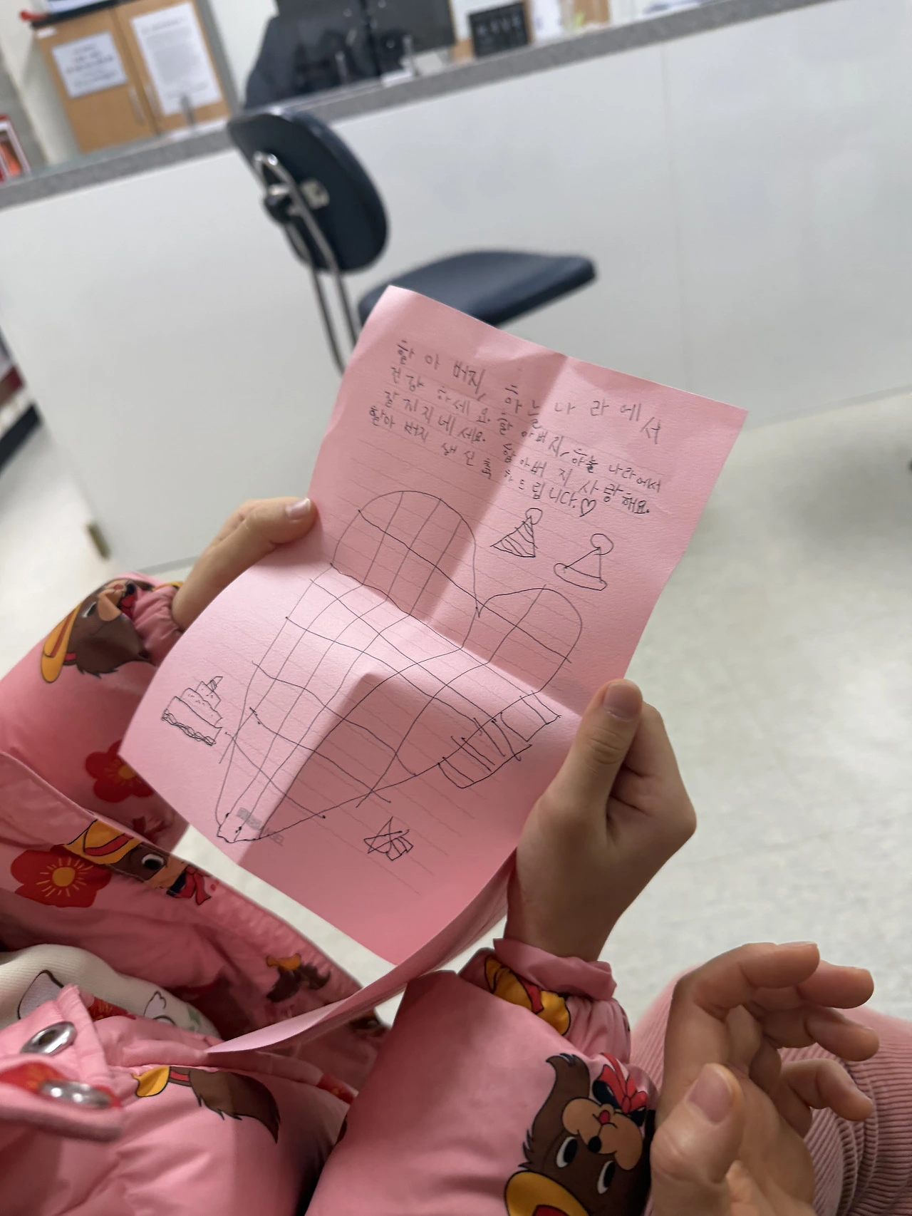 아빠, 손녀가 할아버지한테 편지를 썼어요. 하늘나라에서는 아프지 말고 건강하시라고요.