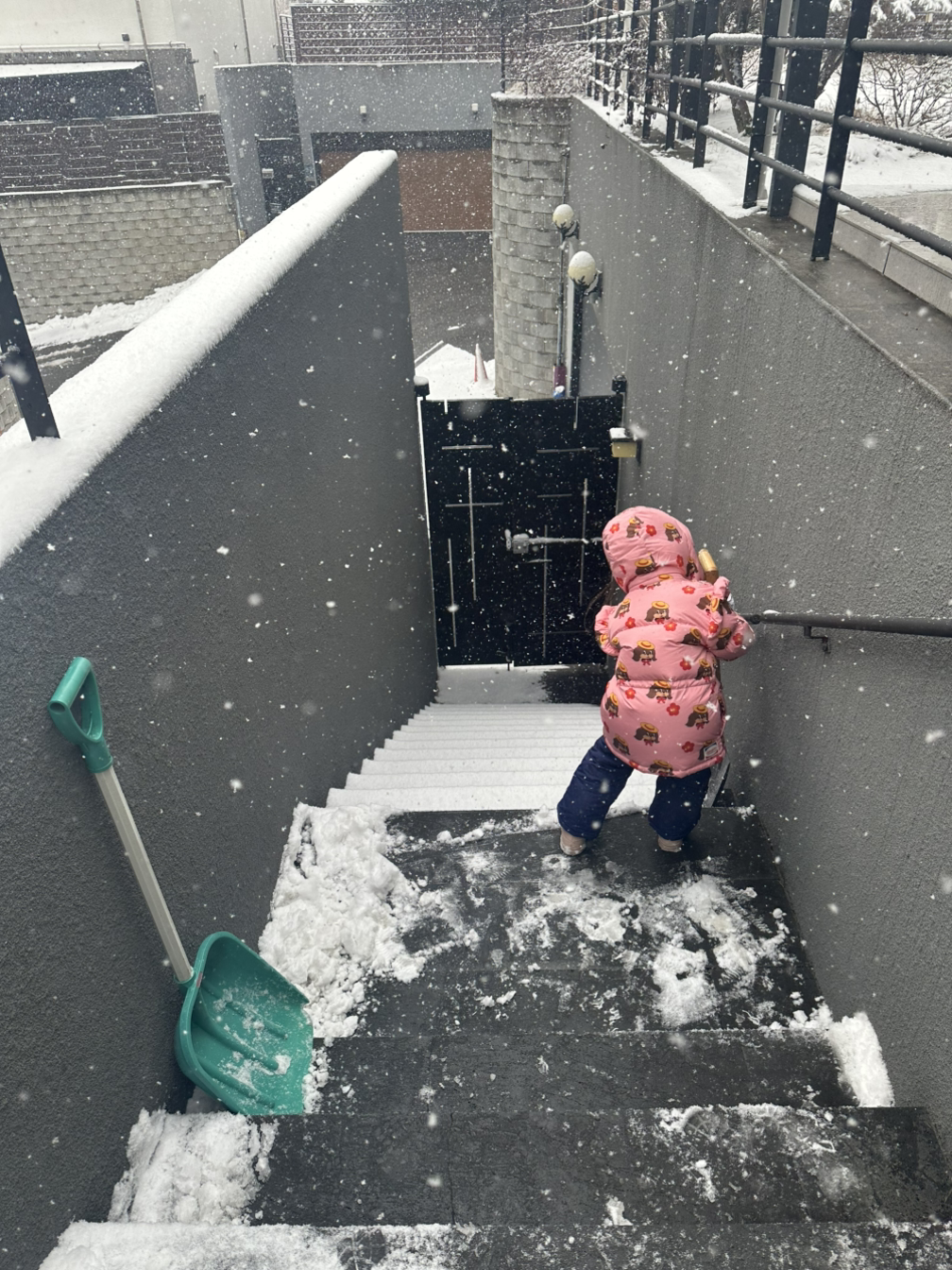 나의 즉석 제안에 아이는 금방 방수바지를 입고, 장갑까지 야무지게 끼고, 혼자 점퍼까지 입은 뒤 지퍼까지 잘 채웠다. 대충 눈사람만 만들고 들어올 생각이었는데 아이는 삽을 들고 눈을 치우기 시작한다. 이렇게나 잘 치운다고?? 완전 기특이.