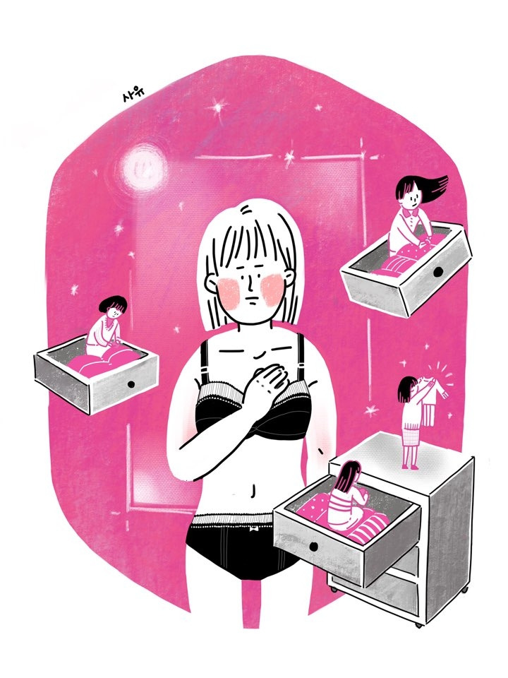 20대 후반이 됐다. 그만큼 ‘내 것’이 아닌 속옷을 함부로 입는 데에도 면역이 생겼다. 언니들 중 몇은 결혼해서 집을 나갔고, 시발비용으로 속옷 몇 벌쯤은 살 수 있다. 언제든지 변화를 줄 수 있는 상황이 주어졌지만 선뜻 ‘내 것’을 갖지 못한다.